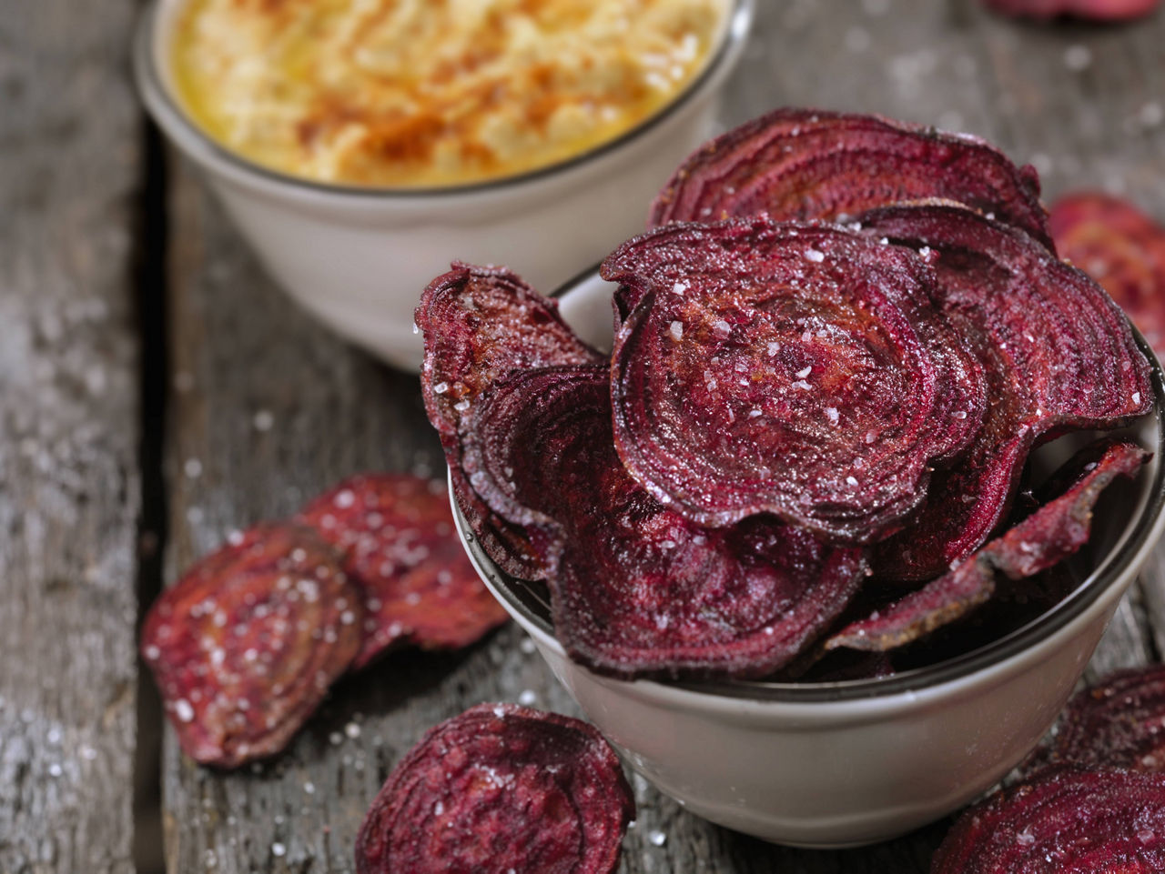 2- Placez les rondelles de betterave sur un papier sulfurisé (sans les superposer) et saupoudrez-les légèrement de sucre glace. Faites cuire au four pendant 30 min à 120°C