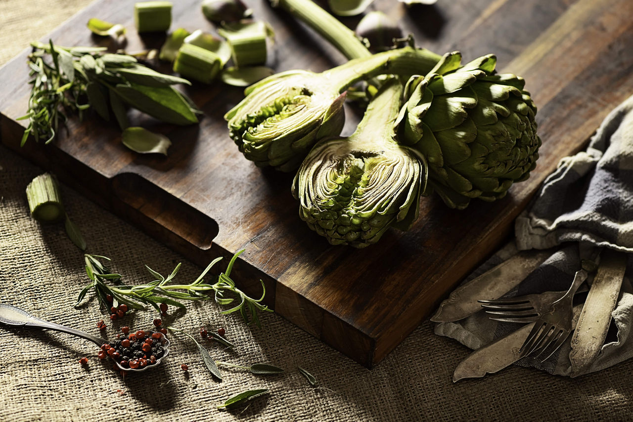 2- Coupez en dès les fonds d'artichauts et la pomme de terre.