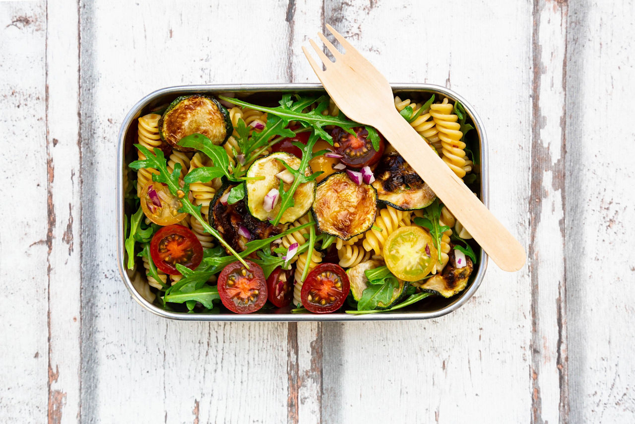 5- Disposez les pâtes et les courgettes dans le plat de service.