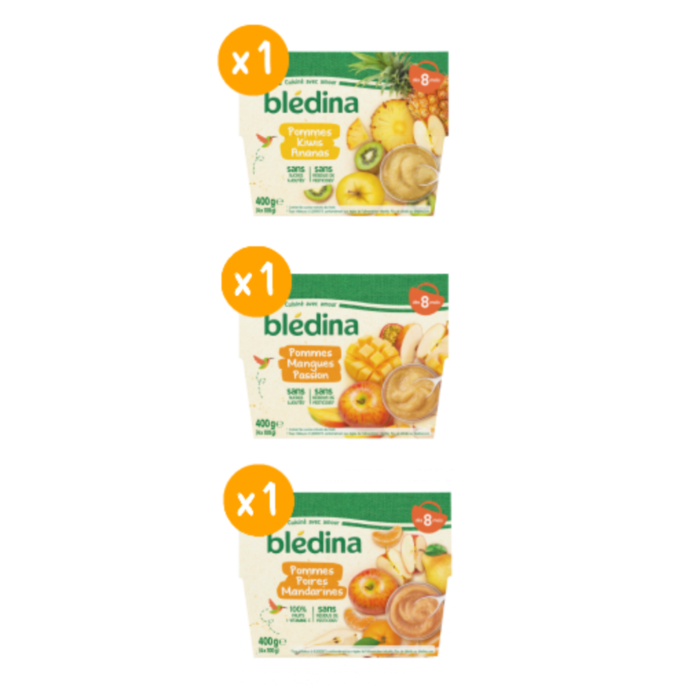 Bébé grandit, proposez-lui des mélanges originaux de fruits avec une texture pulpeuse. ⠀⠀⠀⠀⠀⠀⠀⠀⠀ Ce lot contient 12 coupelles. 1x Coupelles Pommes Kiwis Ananas (4x100g) 1x Coupelles Pommes Mangues Passion (4x100g) 1x Coupelles Pommes Poires Mandarines (4x100g)