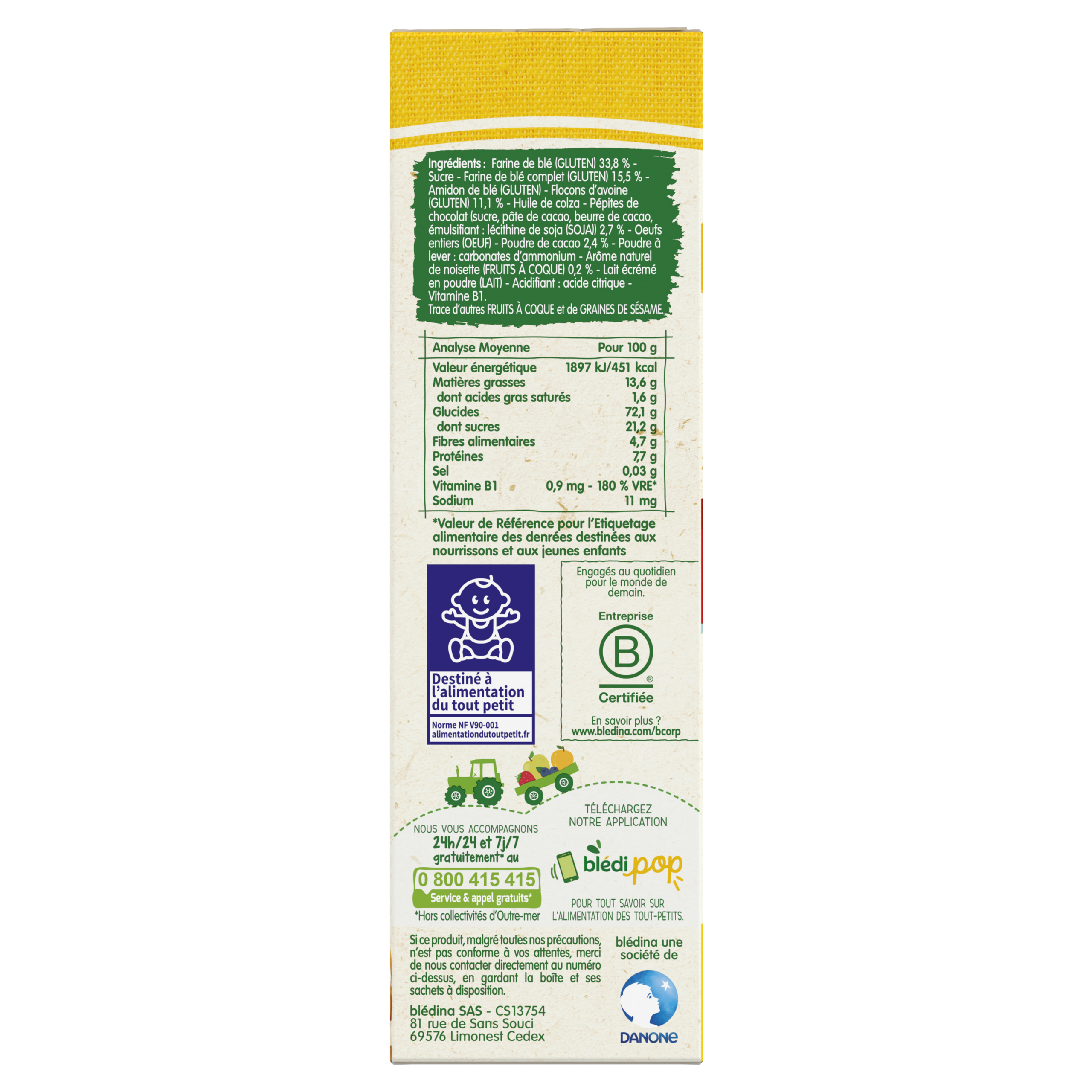 Matin à dévorer, c'est la gamme spécialement développée pour le petit déjeuner des grands bébés. Ces recettes gourmandes ont été conçues afin qu'il puisse "faire comme les grands" avec des biscuits adaptés à son âge et à ses besoins pour bien commencer la journée. Ces biscuits de 15 mois à 3 ans (se référer ci-dessous aux détails des informations du produit pour savoir si bébé est prêt) ont une texture croquante puis fondante en bouche, avec des petits flocons d'avoine et du blé complet pour accompagner bébé dans la découverte de nouvelles texture. Lot de 2 packs contenant chacun 12 sachets de 2 biscuits.