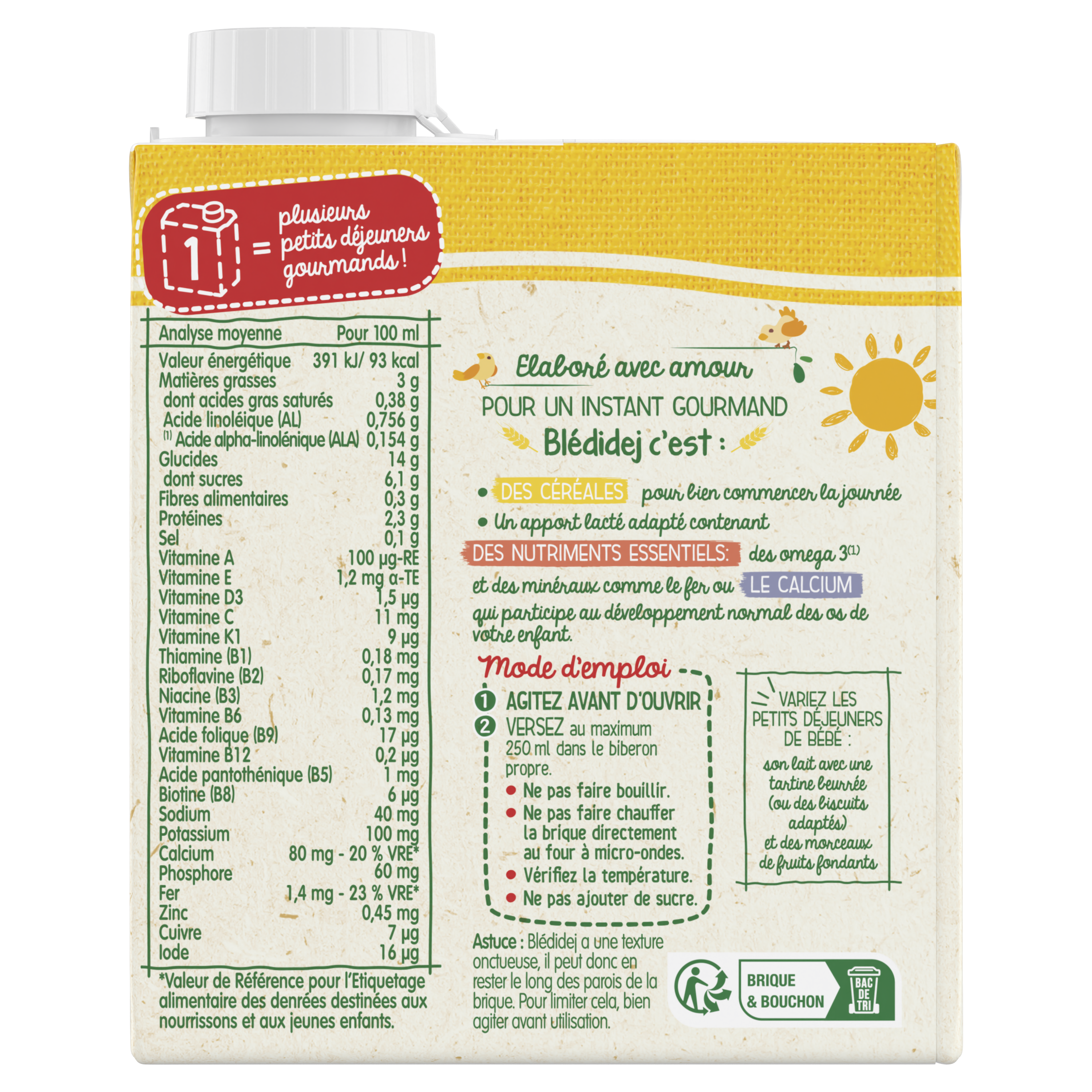 1 brique = 2 biberons