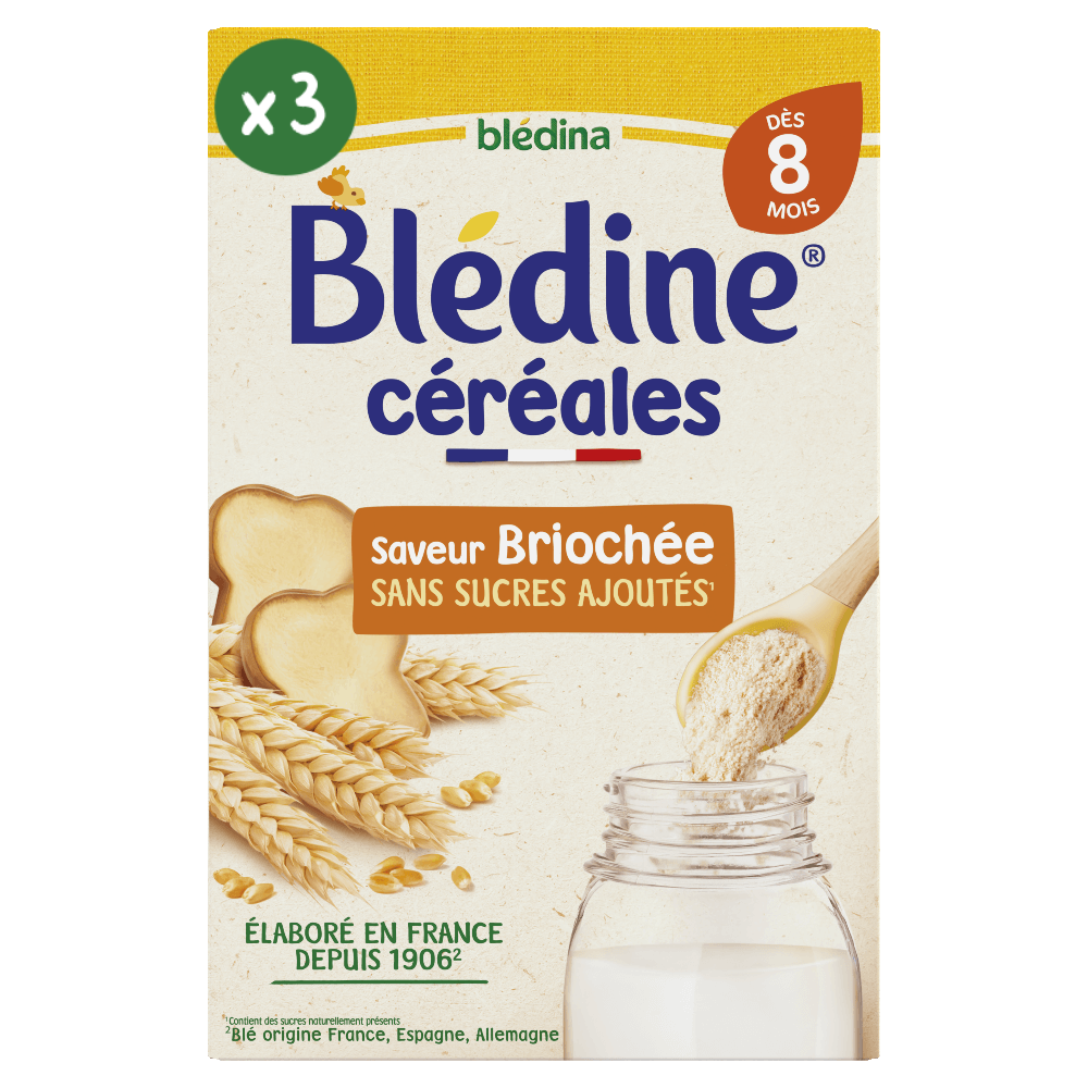 Experts en nutrition infantile et inventeurs des céréales pour bébé, nous avons à cœur de proposer des recettes adaptées* aux besoins et au petit palais de bébé. Nous avons fait le choix de limiter drastiquement la quantité de sucres présente dans nos recettes et ça ne passe pas inaperçu. C'est un goût toujours doux et plus délicat, une couleur plus claire, une odeur gourmande plus subtile et une texture plus généreuse. La Blédine® régale les bébés depuis plus de 100 ans et ce n'est pas prêt de changer. La Blédine® a été inventée par 2 pharmaciens Léon Jacquemaire et Maurine Miguet en 1906. La Blédine® est élaborée en France dans notre usine historique de Villefranche-sur-Saône. Lot de 3 packs contenant chacun 400g de préparation.