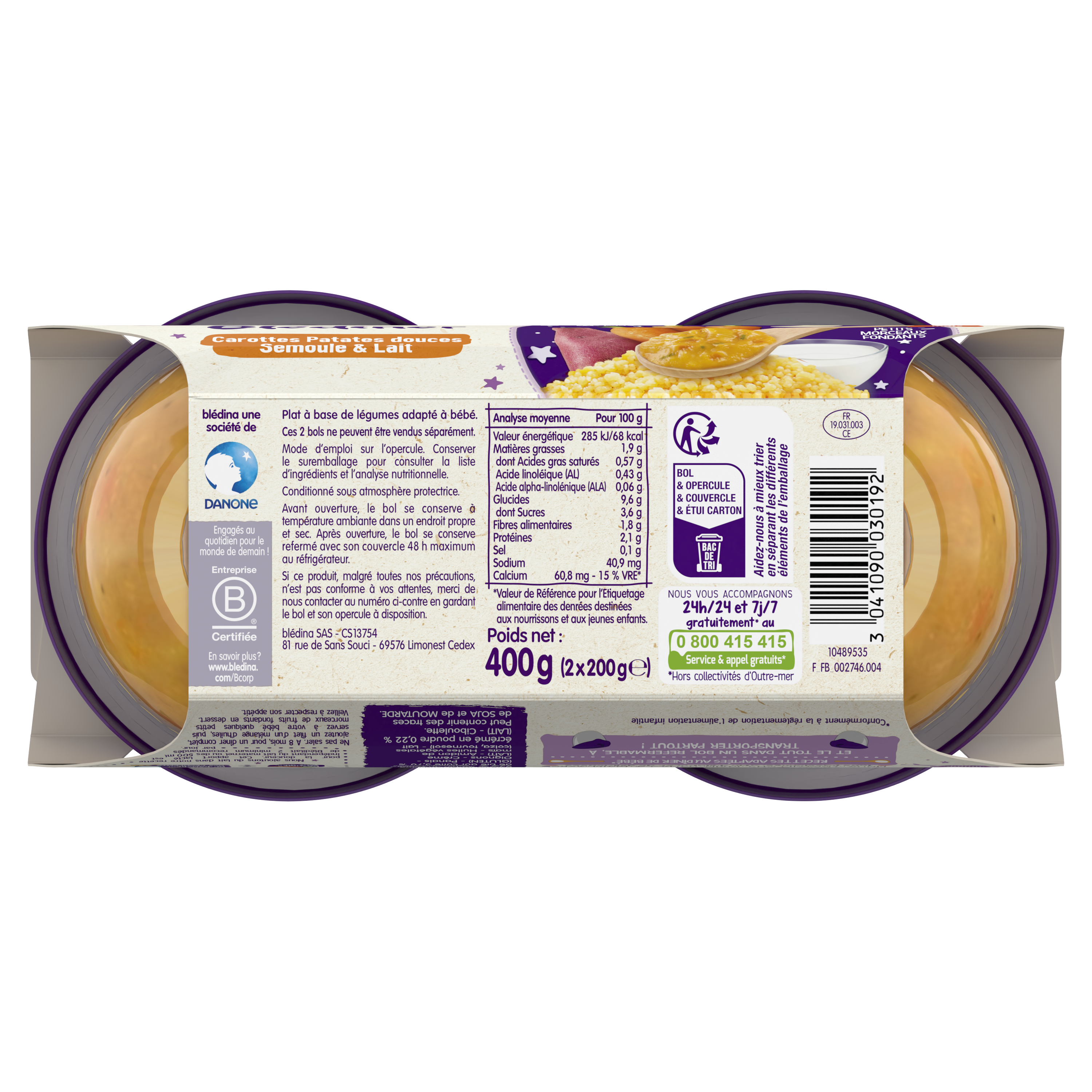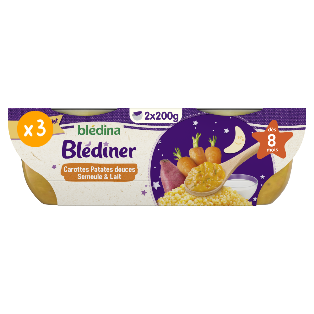 Blédîner - Carottes Patates douces Semoule et Lait - Lot x3