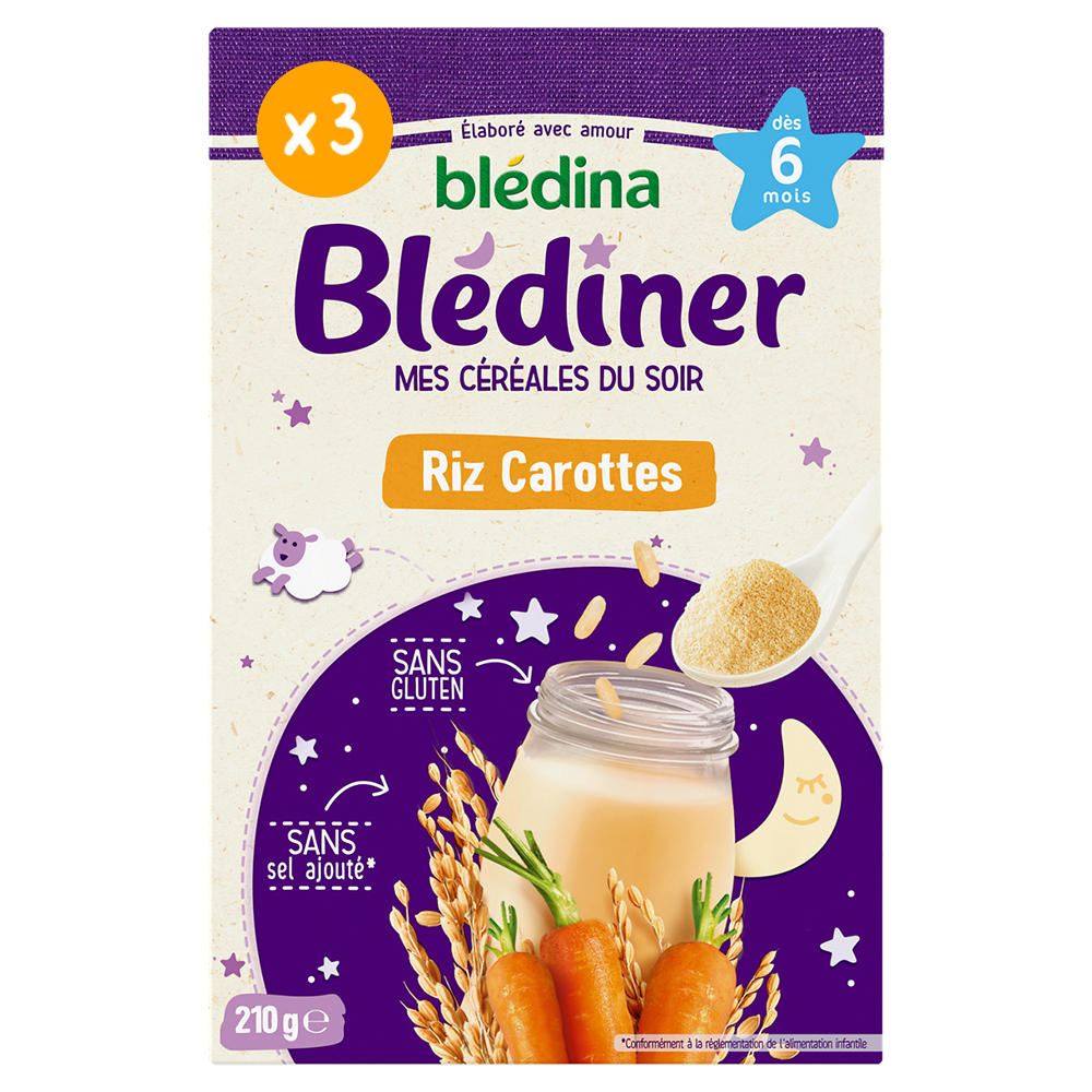 Blédîner - Céréales du soir Riz Carottes - Lot x3