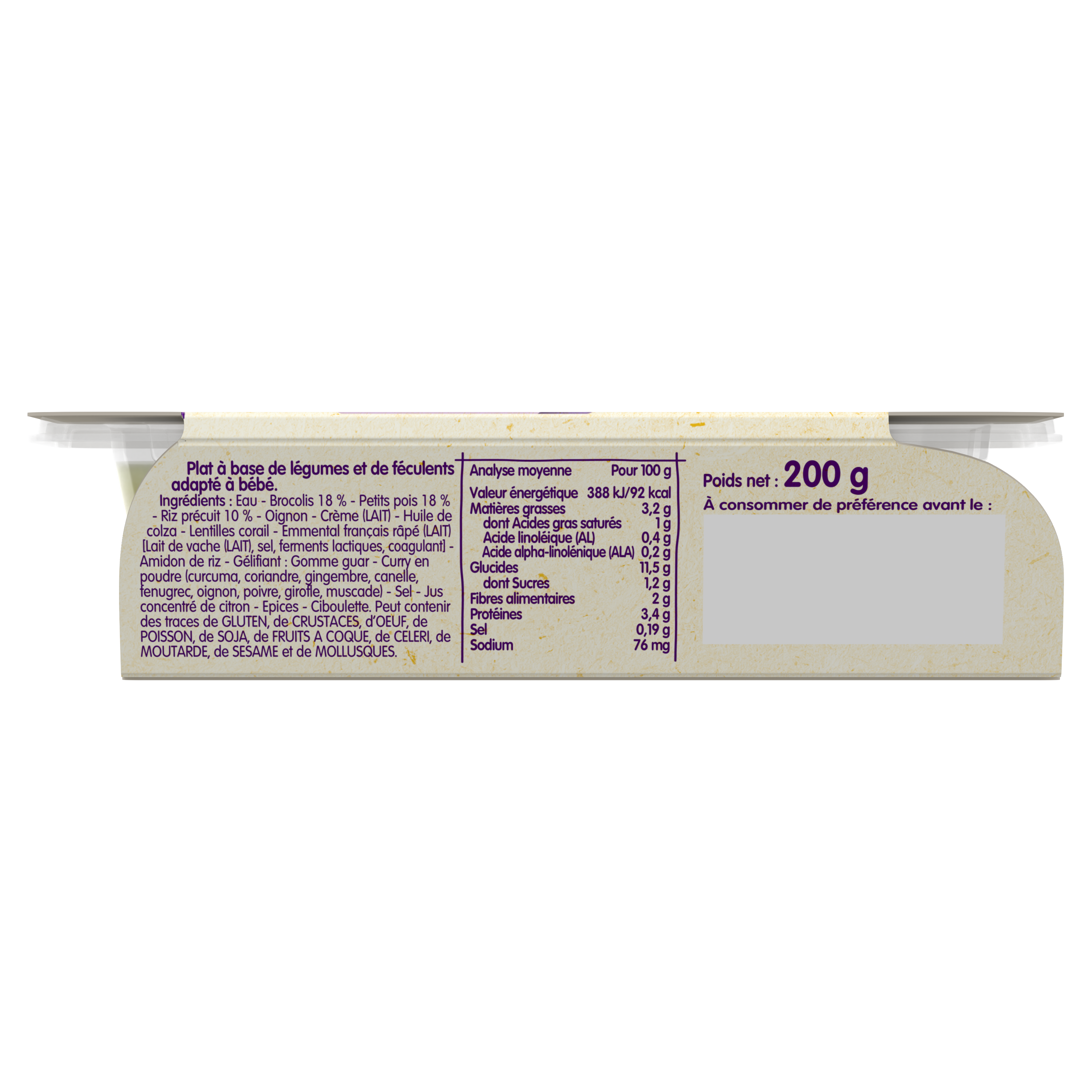 Découvrez les petits plats blédina MORCEAUX À DEVORER de 15 mois à 3 ans (se référer ci-dessous aux détails des informations du produit pour savoir si bébé est prêt). Carottes Brocolis, Petits Pois & Riz au curry douxUn plat complet pour le soir composé d'ingrédients faciles à reconnaître pour apprendre à votre bébé à manger progressivement comme un grand.Aidez le à reconnaitre tous les bons ingrédients de son assiette !Ce lot contient 3 assiettes de 200g chacun