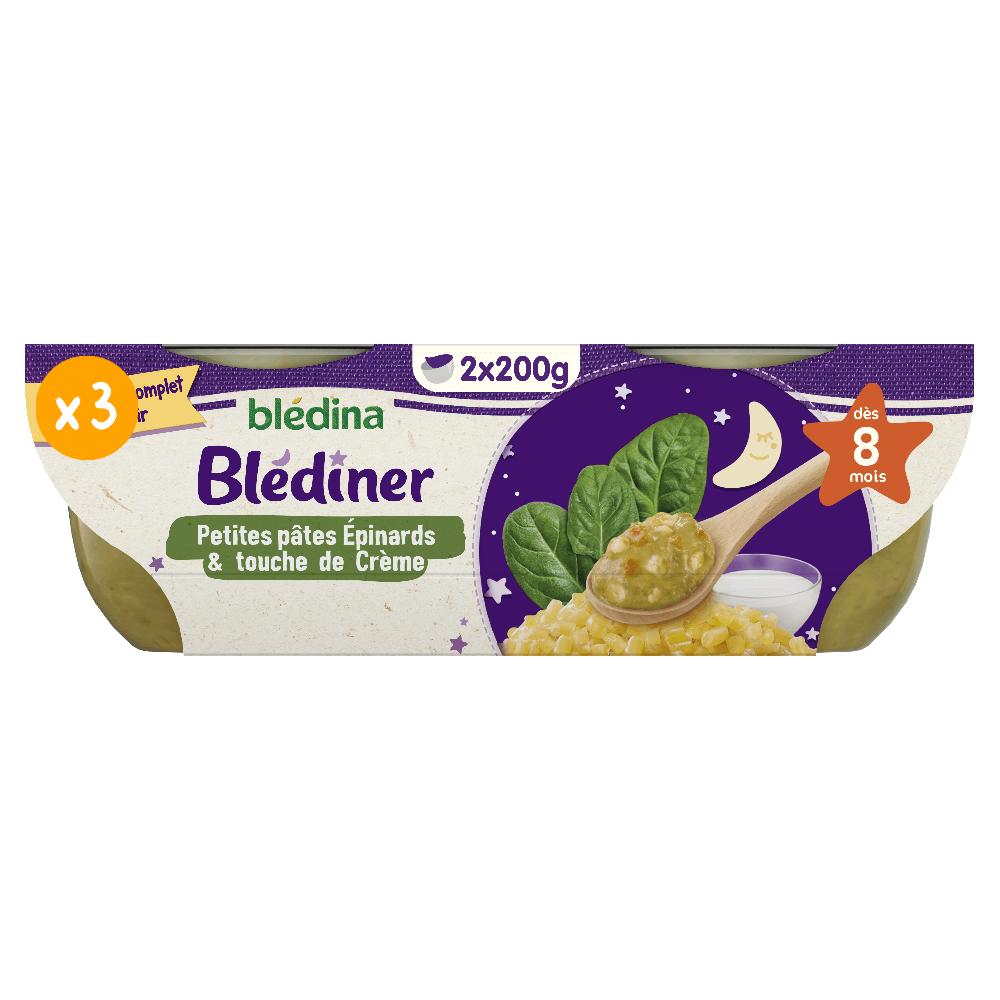 Blédîner - Petites Pâtes Epinards et touche de crème - Lot x 3