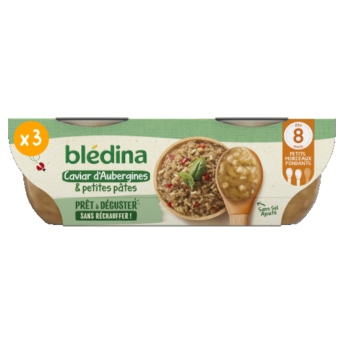 Découvrez notre notre Caviar d'Aubergines et petites pâtes revisité et adapté à bébé*, une recette directement prêt à déguster sans besoin de la réchauffer ! Avec des petits morceaux fondants pour préparer bébé à bien mâcher ! Nous avons retravaillé notre gamme Mes Moulinés : désormais les bols Déjeuner offrent une texture progressive de 6 à 12 mois, et sont sans couvercle ! Et non sans raison, car cela permet à Blédina d’éviter l’utilisation de plus de 130 tonnes de plastique par an*. Cela représente une réduction de 35,6% de plastique sur chacun de nos bols ! Ce lot contient 6 bols de 200g chacun *conformément à la réglementation de l'alimentation infantile **Sur les Bols Blédina (midi et soir) 2x200g sur la base des ventes annuelles 2023.