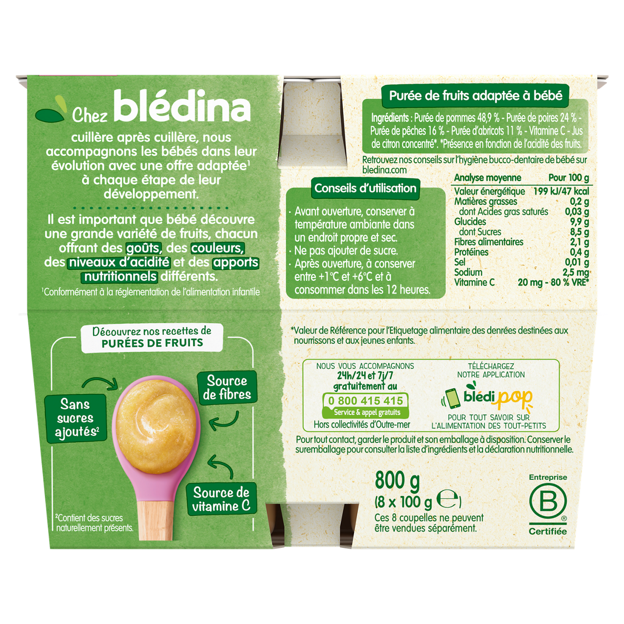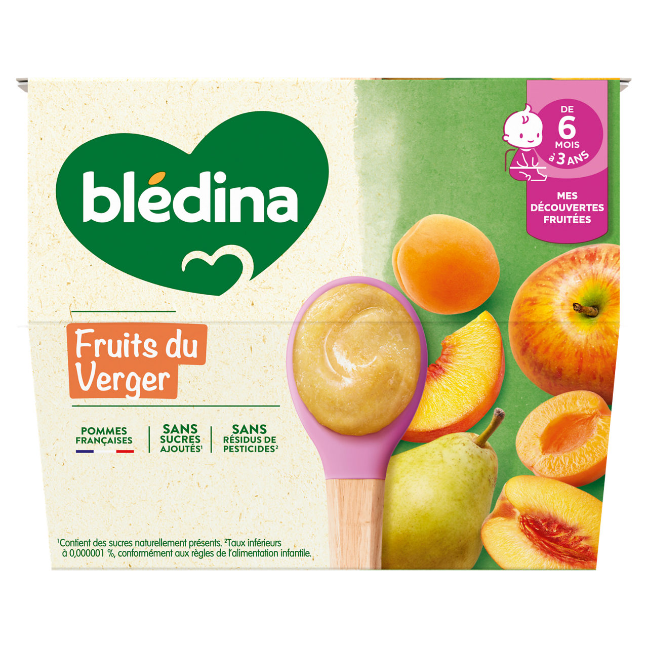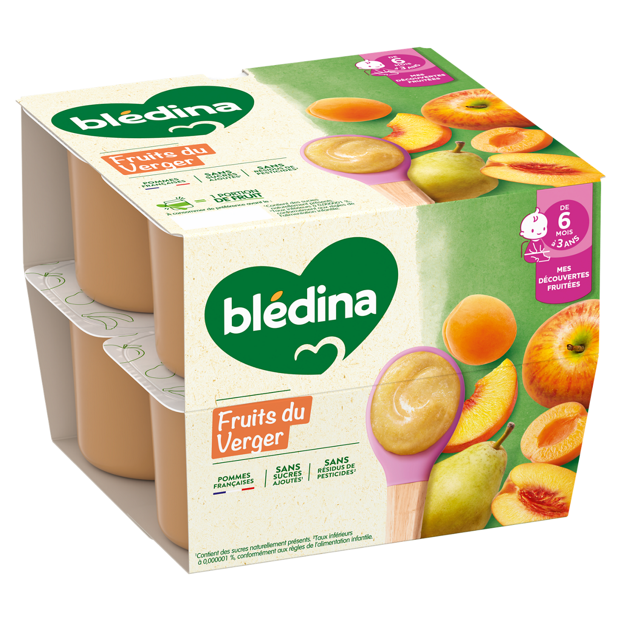 Découvrez Les coupelles de fruits Blédina : de savoureuses recettes de purées de fruits pour le goûter, déjeuner ou dîner de bébé dès 6 mois. Faites découvrir à bébé une incroyable variété de fruits avec l’ensemble de nos saveurs de la gamme Coupelles de fruits ! Sans sucres ajoutés : contient les sucres naturels des fruits. Sans résidus de pesticides : taux inférieurs à 0,000001%, conformément aux règles de l'alimentation infantile. Plus de détails sur bledina.com. Plus de 15 recettes de purées de fruits à découvrir, élaborées par nos nutritionnistes et cuisinées en France à Brive la Gaillarde et parfaitement adaptées à l'âge de bébé (conformément à la réglementation de l'alimentation infantile). Lot de 3 packs contenant chacun 8 coupelles de 100g.