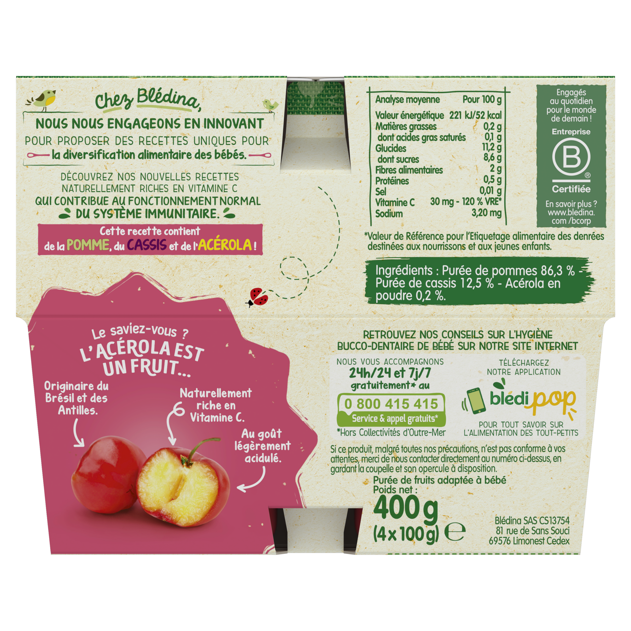Coupelles Pomme Cassis Acérola - Lot x3