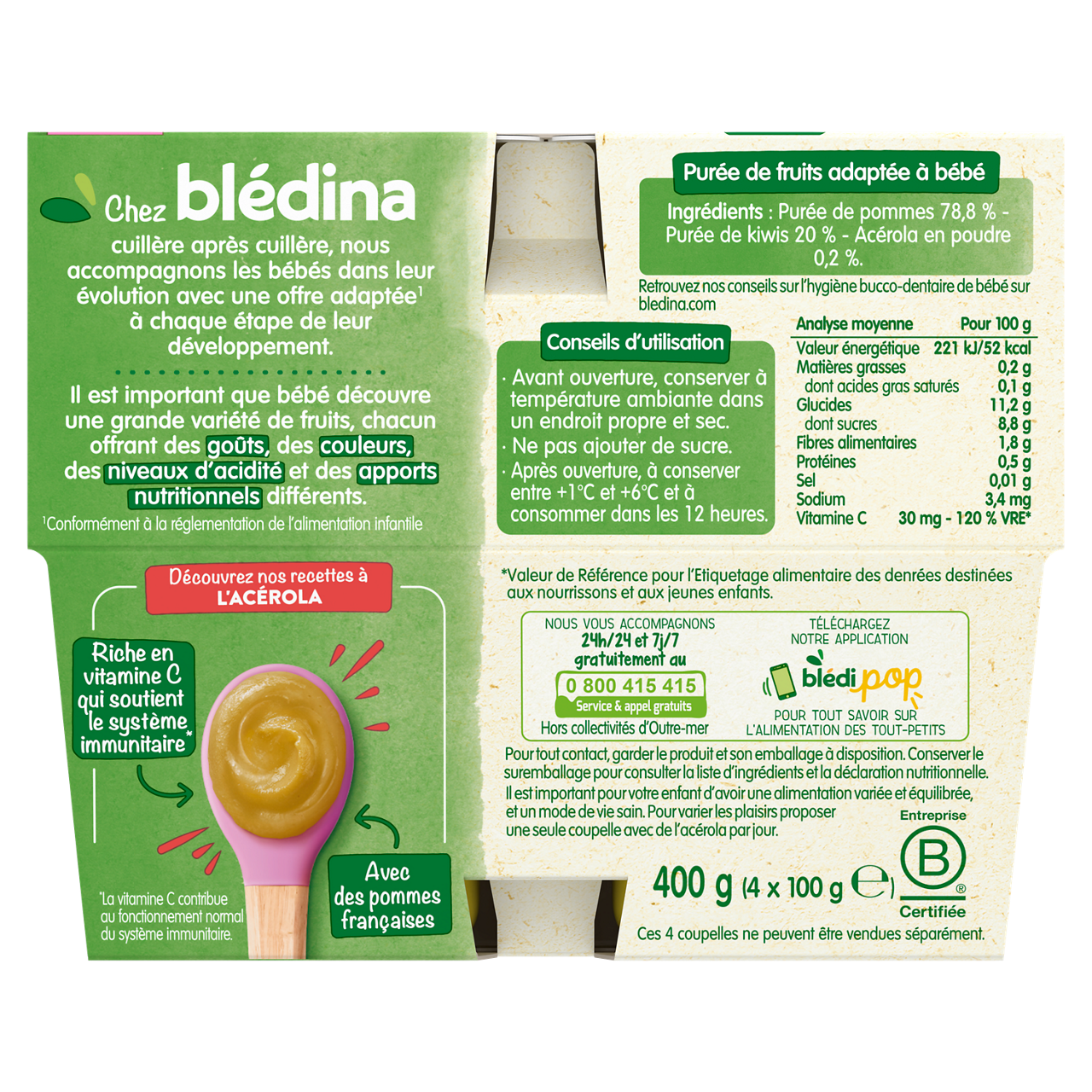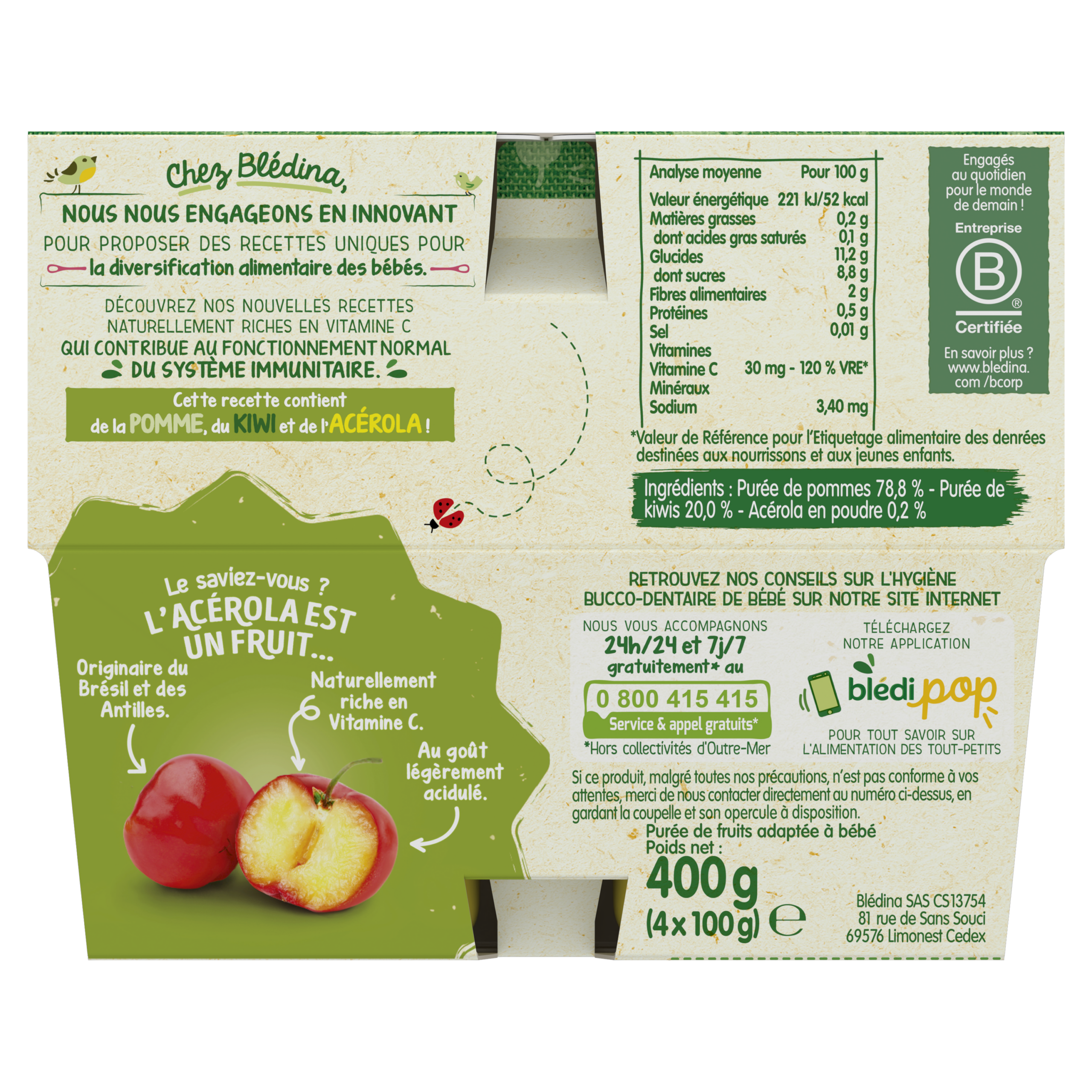 Coupelles Pomme Kiwi Acérola - Lot x3