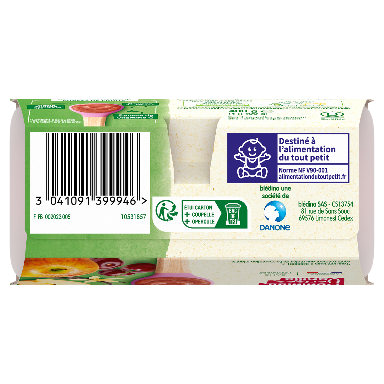 Coupelles Pommes Cerises Vanille - Lot x3