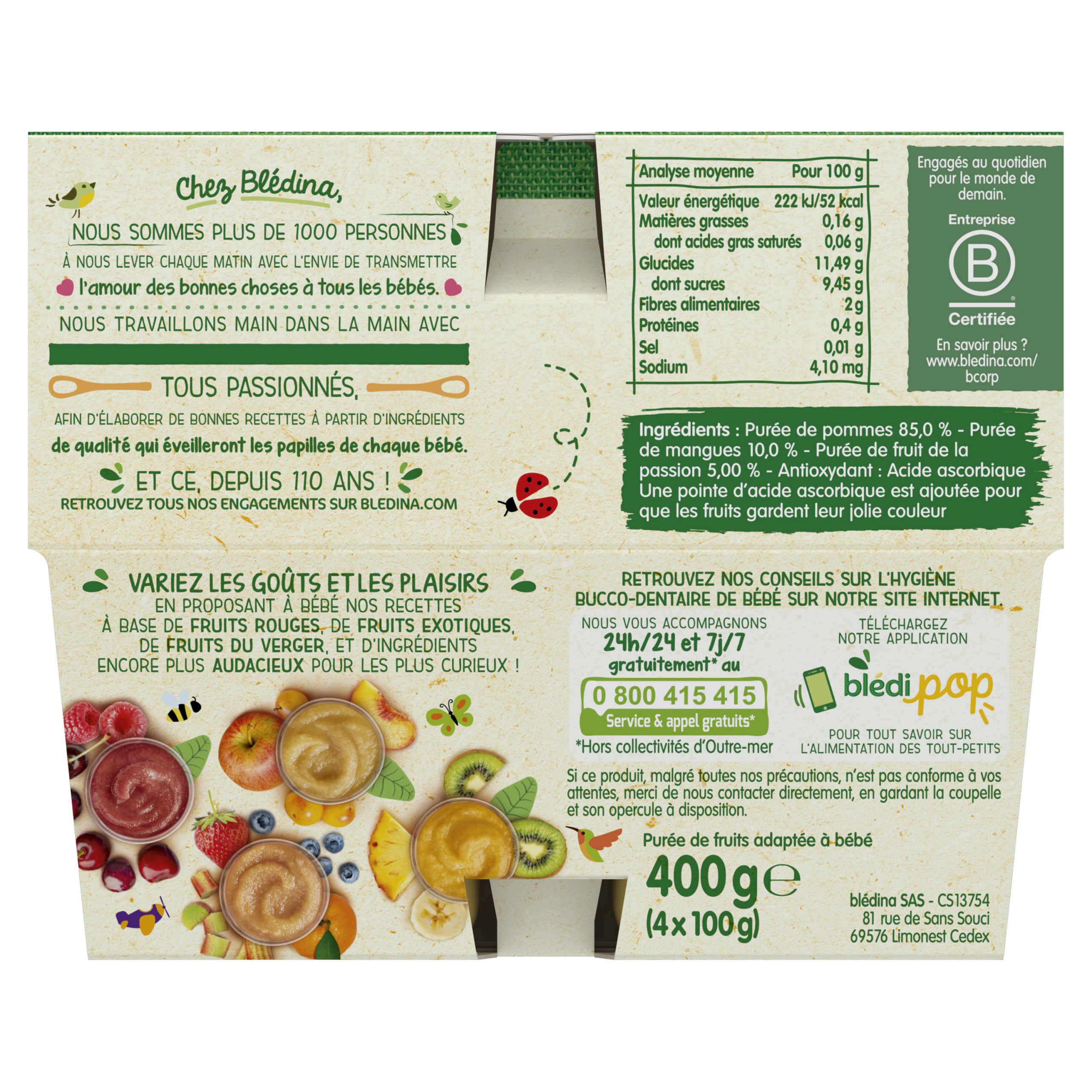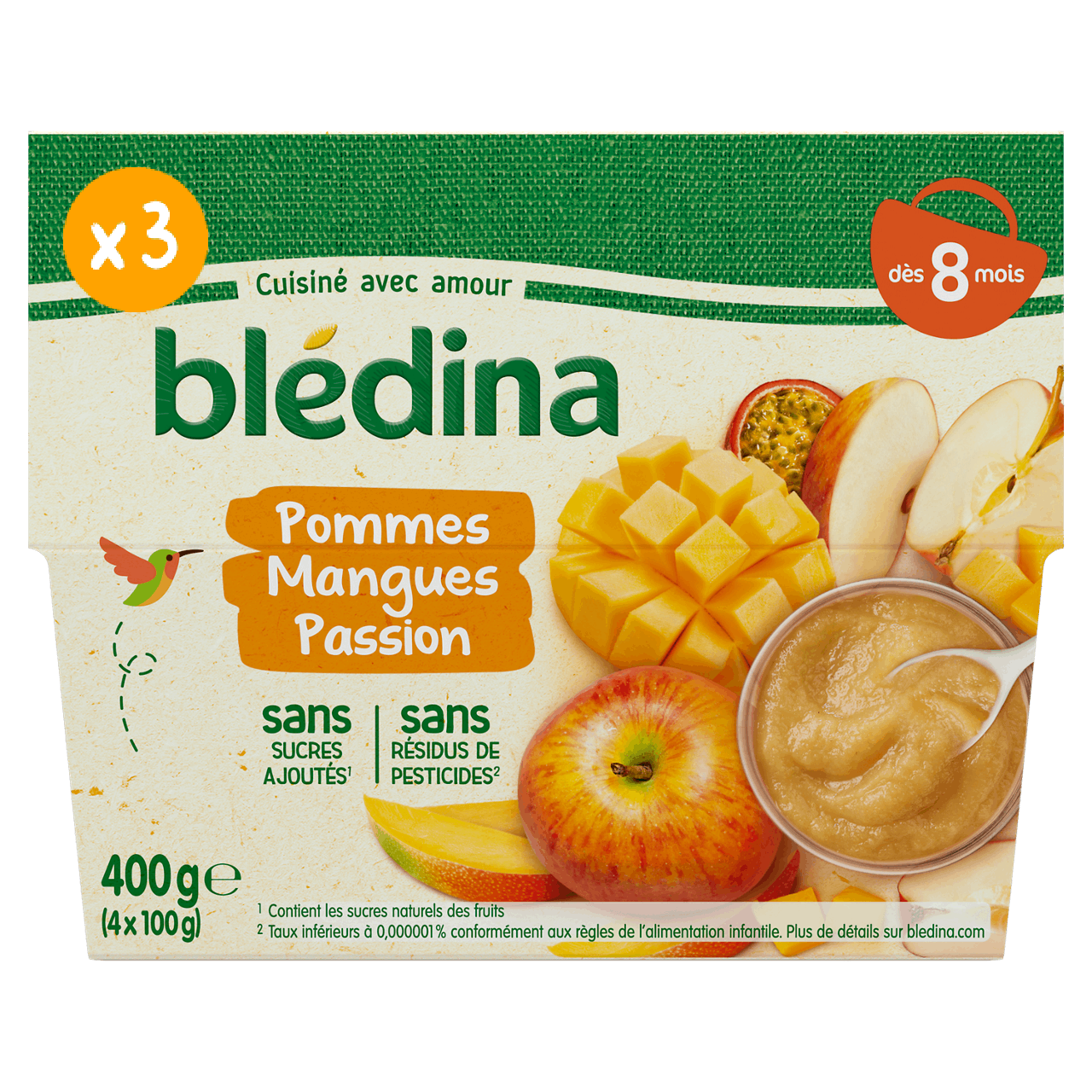 Découvrez Les coupelles de fruits Blédina : de savoureuses recettes de purées de fruits pour le goûter, déjeuner ou dîner de bébé dès 8 mois. Faites découvrir à bébé une incroyable variété de fruits avec l’ensemble de nos saveurs de la gamme Coupelles de fruits !   Purée de fruits sans sucres ajoutées, contenant uniquement les sucres naturels des fruits ! Cuisinés en France, à Brive la Gaillarde Une texture onctueuse et pulpeuse Plus de 15 variétés à découvrir !   Lot de 3 packs contenant chacun 4 coupelles de 100g.