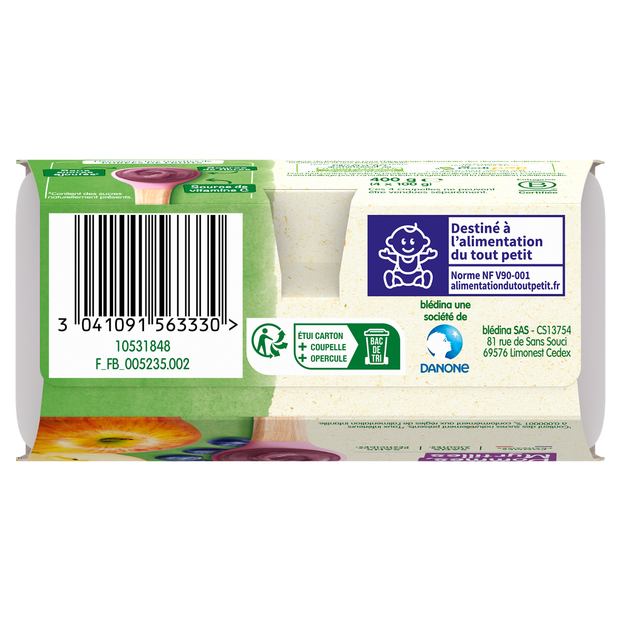 Coupelles Pommes Myrtilles - Lot x3