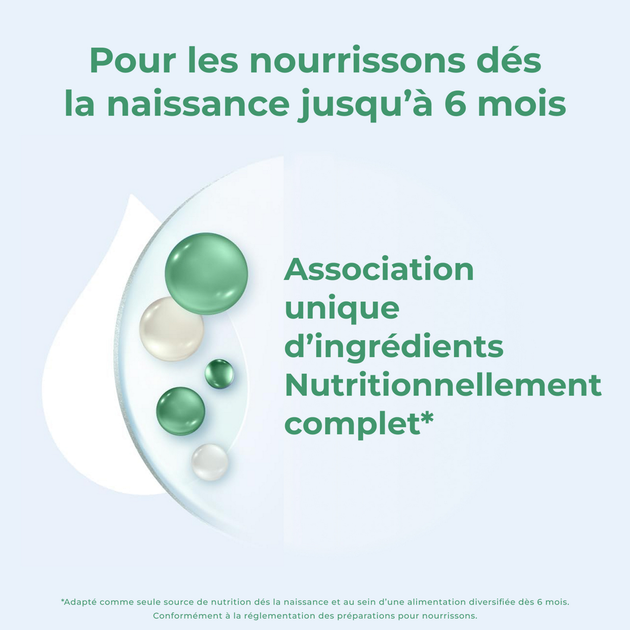 Les préparations pour nourrissons conviennent dès la naissance lorsque les bébés ne sont pas allaités, et doivent être utilisées uniquement sur les conseils de personnes indépendantes qualifiées en médecine, nutrition ou pharmacie, ou d’autres professionnels responsables des soins maternels et infantiles. Les préparations de suite sont destinées uniquement aux bébés de plus de 6 mois, comme composante liquide d’une alimentation diversifiée. Elles ne doivent pas être utilisées comme substitut du lait maternel avant 6 mois. Lorsque vous utilisez des préparations infantiles, suivez toujours attentivement les instructions d’utilisation : une utilisation inappropriée ou inutile pourrait nuire à la santé de votre bébé.