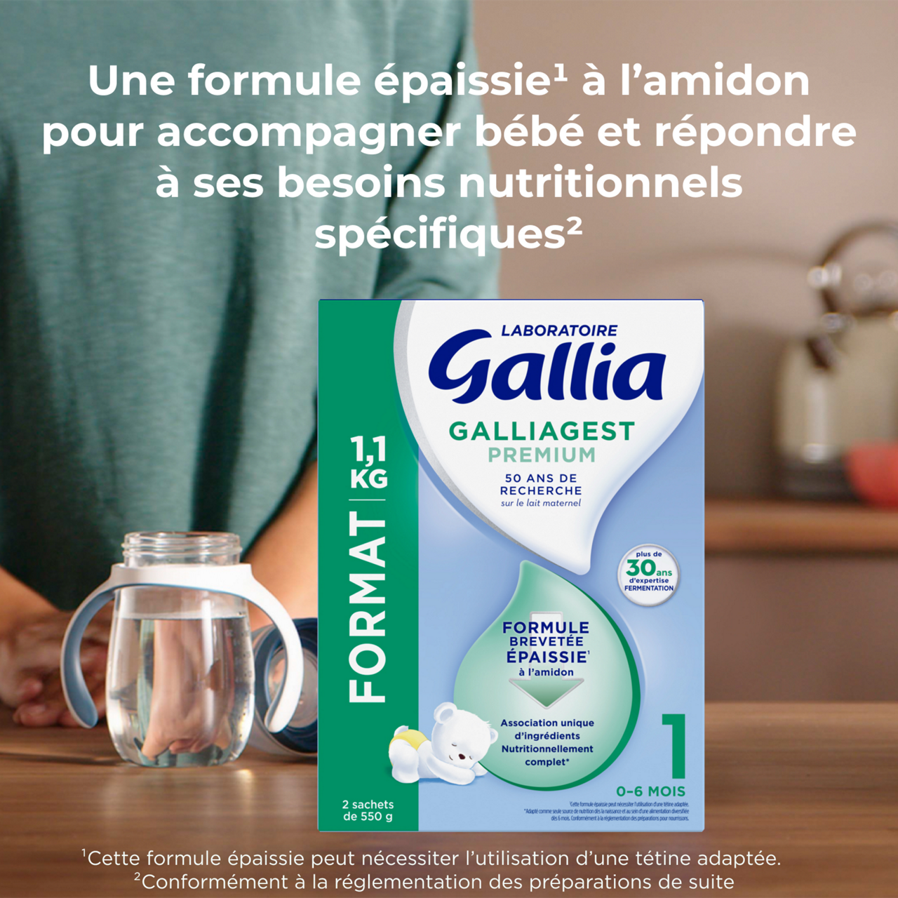 Découvrez le lait en poudre Galliagest Premium 1er âge, une formule épaissie (pouvant nécessiter l’usage d’une tétine adaptée) qui répond aux besoins spécifiques du nourrisson de 0 à 6 mois.