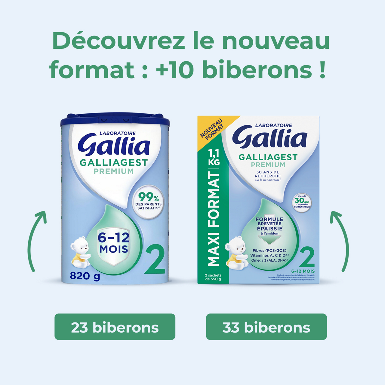 Découvrez le lait en poudre Galliagest Premium 2ème âge, une formule épaissie (pouvant nécessiter l’usage d’une tétine adaptée) qui répond aux besoins spécifiques du nourrisson de 6 à 12 mois.