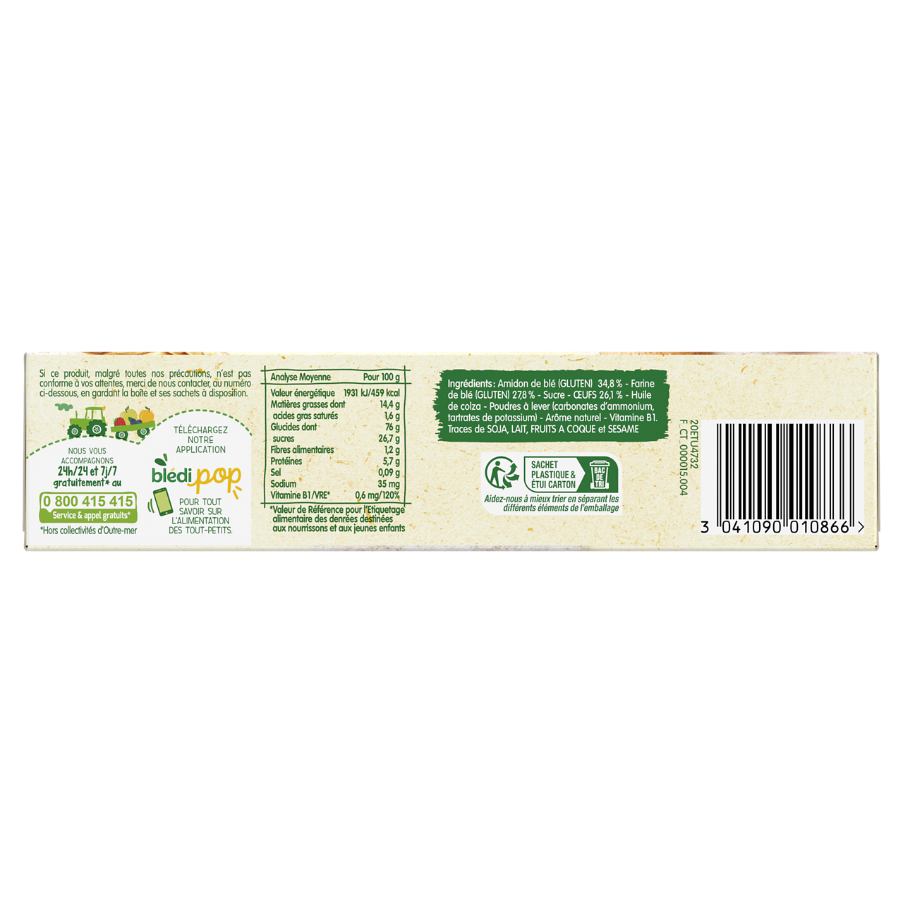 Découvrez Mon 1er Boudoir de Blédina : des biscuits spécialement conçus pour Bébé dès 10 mois (se référer ci-dessous aux détails des informations du produit pour savoir si bébé est prêt), pour un petit-déjeuner ou un goûter gourmand et adapté. Sa texture, croquante puis fondante en bouche, accompagnera bébé dans la découverte de nouvelles textures.   Texture croquante puis fondante en bouche Forme idéale pour ses petites mains Format pratique en sachet à emporter partout   Lot de 3 packs contenant chacun 6 sachets de 4 biscuits.