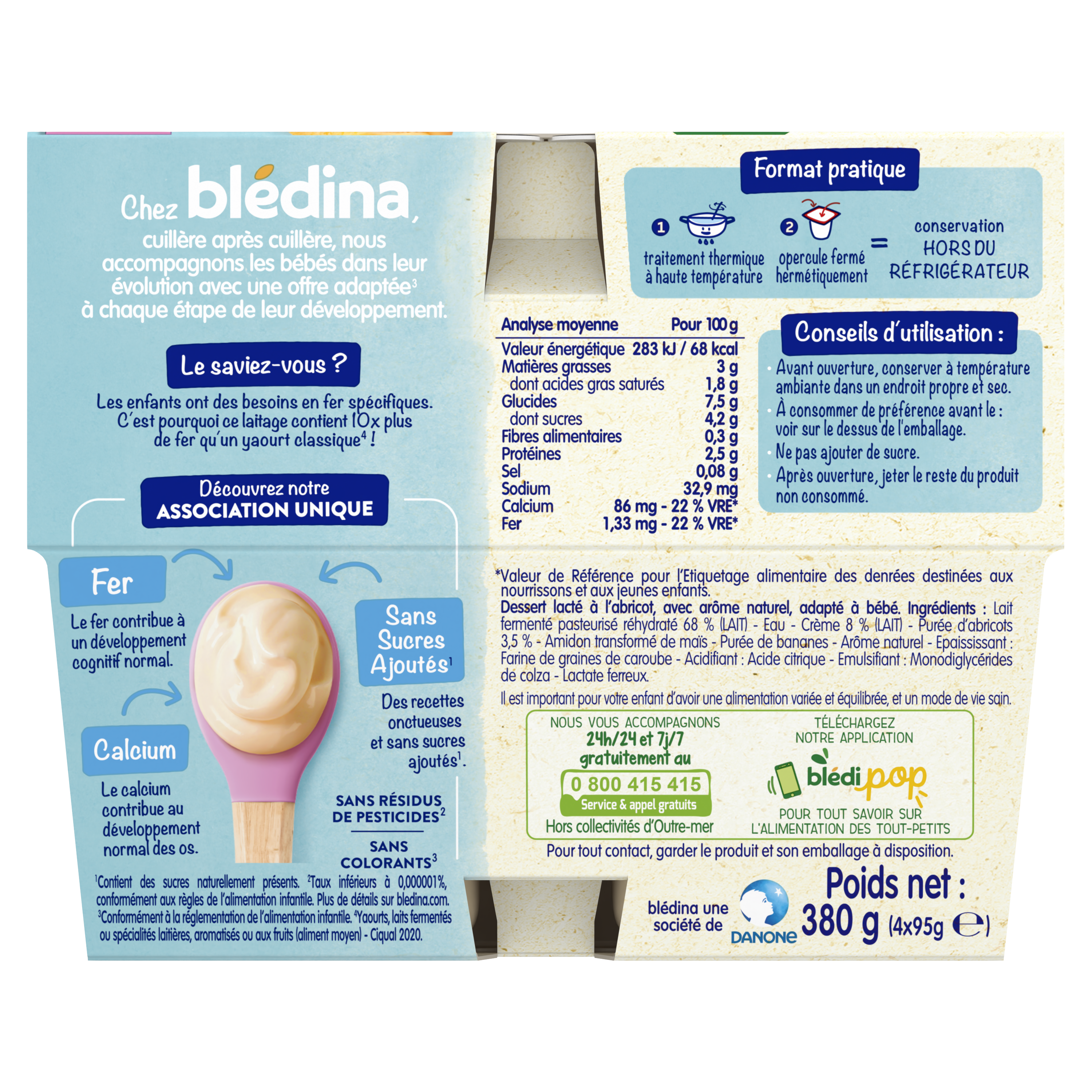 Découvrez Les Brassés pour bébé Blédina : des saveurs inédites dans des recettes onctueuses et généreuses, pour offrir à bébé de nouveaux moments de curiosité dès 6 mois. Initiez bébé au doux goût de l'abricot avec Les Brassés Abricot ! ⠀⠀⠀⠀⠀⠀⠀⠀⠀ Des laitages spécialement conçus pour les tout-petits, sans sucres ajoutés, enrichis en fer et en calcium. ⠀⠀⠀⠀⠀⠀⠀⠀⠀ Ce lot contient 4 packs contenant chacun 4 brassés de 95g.
