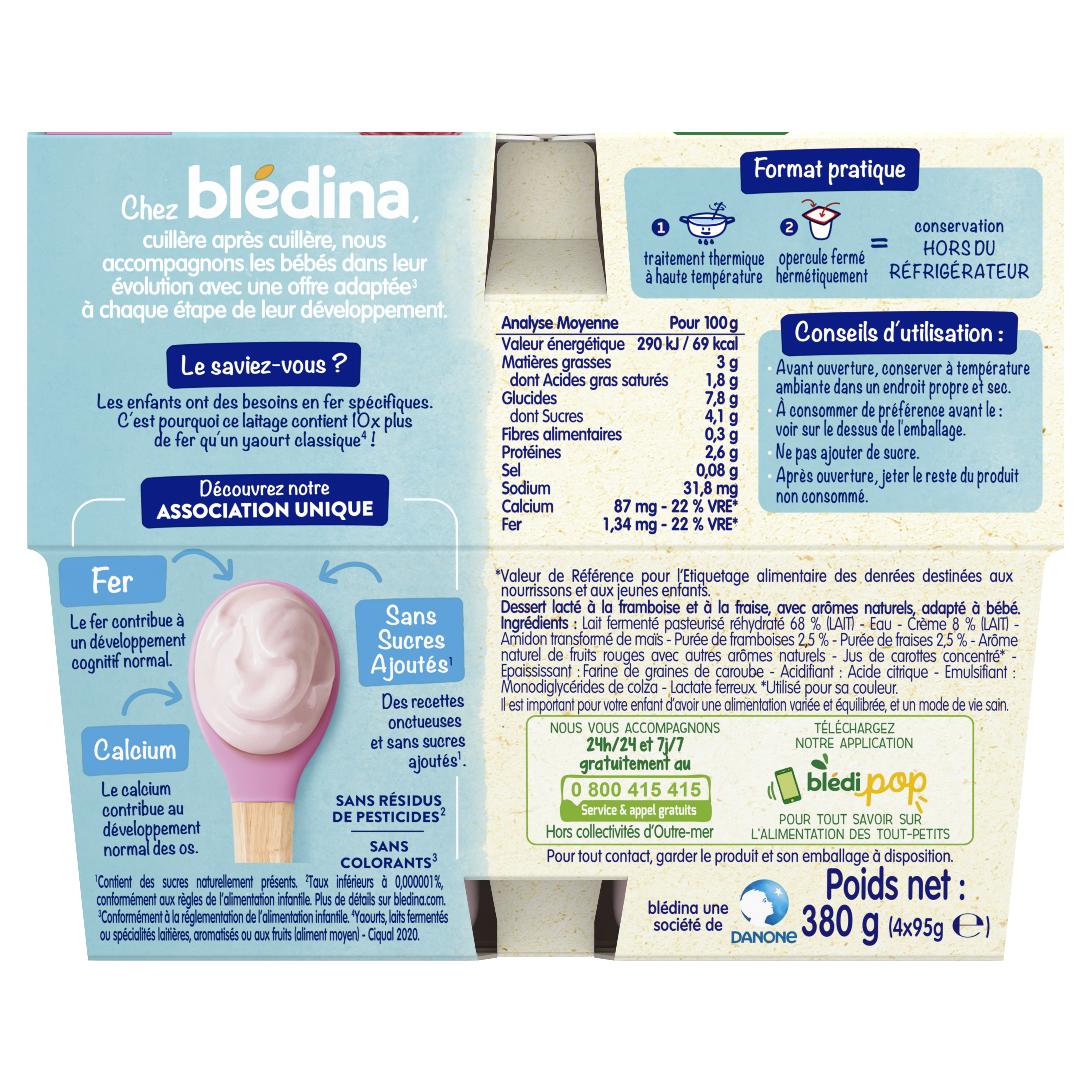 Découvrez Les Brassés pour bébé Blédina : des saveurs inédites dans des recettes onctueuses et généreuses, pour offrir à bébé de nouveaux moments de curiosité dès 6 mois. Initiez bébé au doux goût de la framboise et de la fraise avec Les Brassés Framboise & Fraise ! ⠀⠀⠀⠀⠀⠀⠀⠀⠀ Des laitages spécialement conçus pour les tout-petits, sans sucres ajoutés, enrichis en fer et en calcium. ⠀⠀⠀⠀⠀⠀⠀⠀⠀ Ce lot contient 4 packs contenant chacun 4 brassés de 95g.