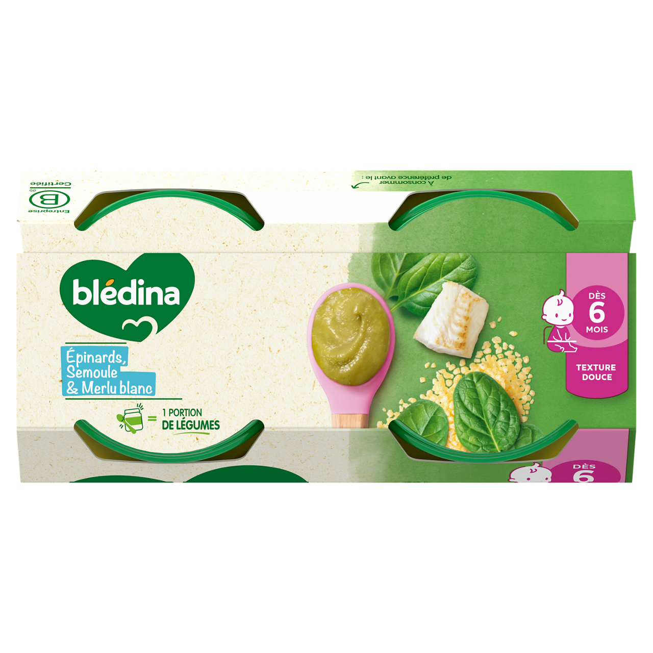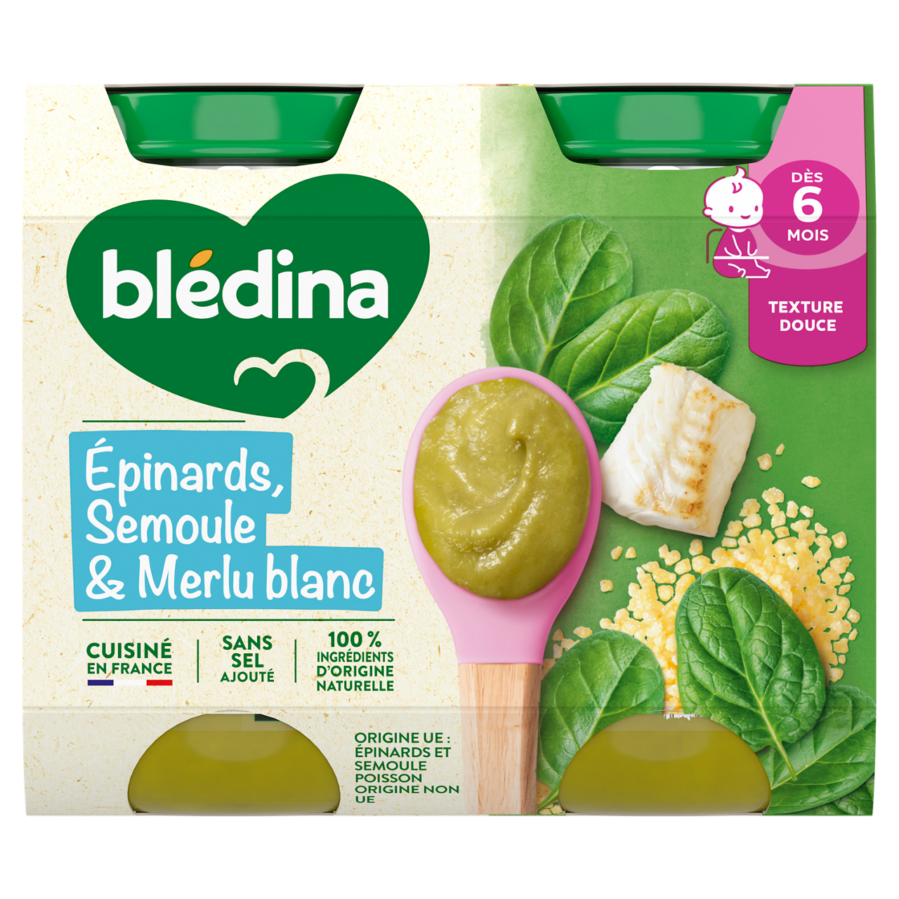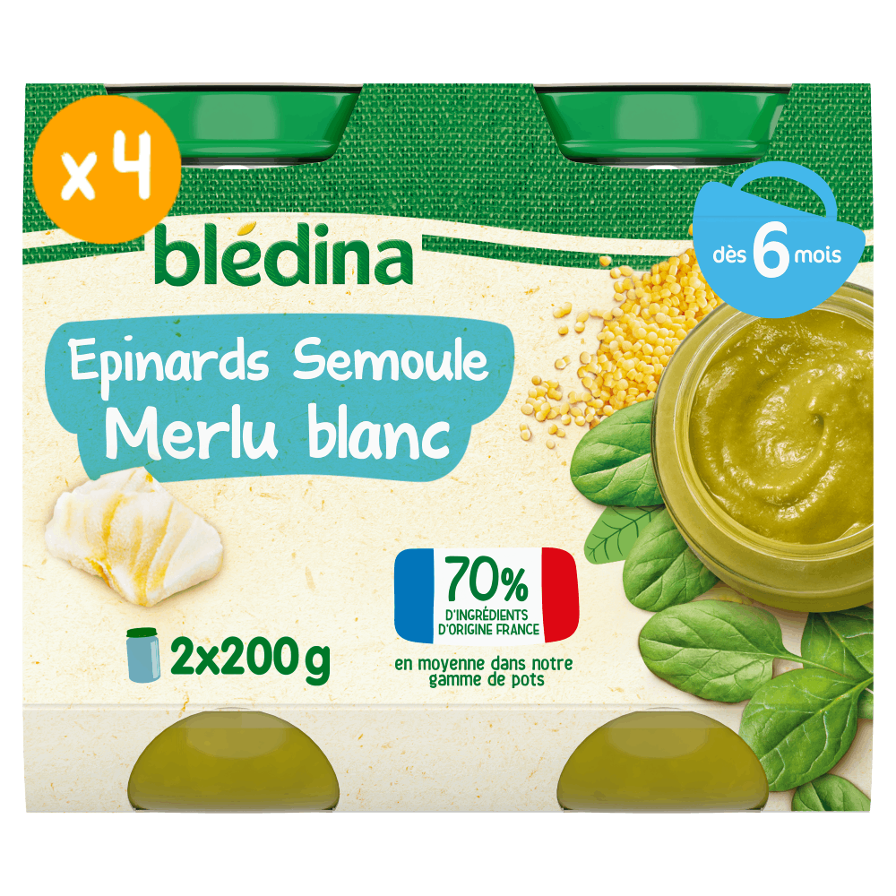 Petits pots Blédina - Epinards Semoule Merlu Blanc - Lot x4