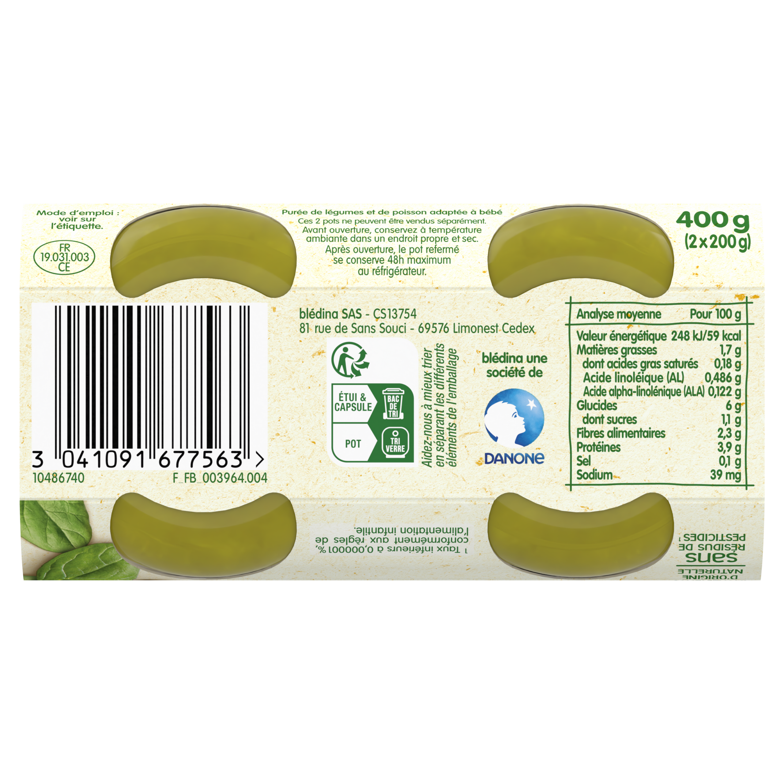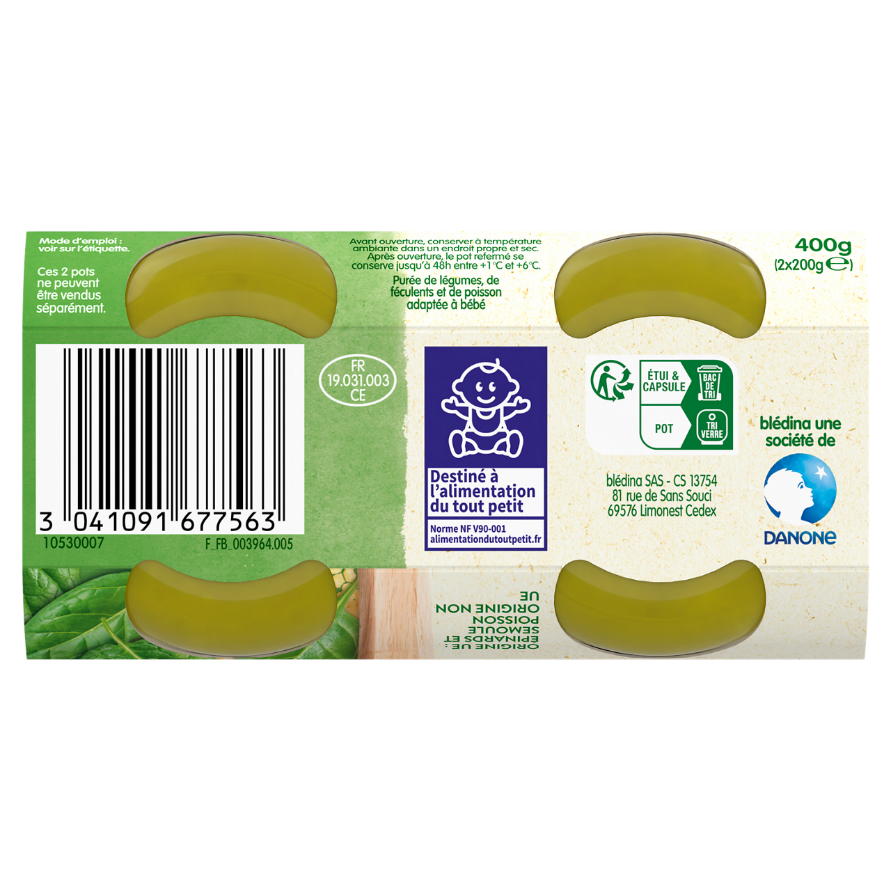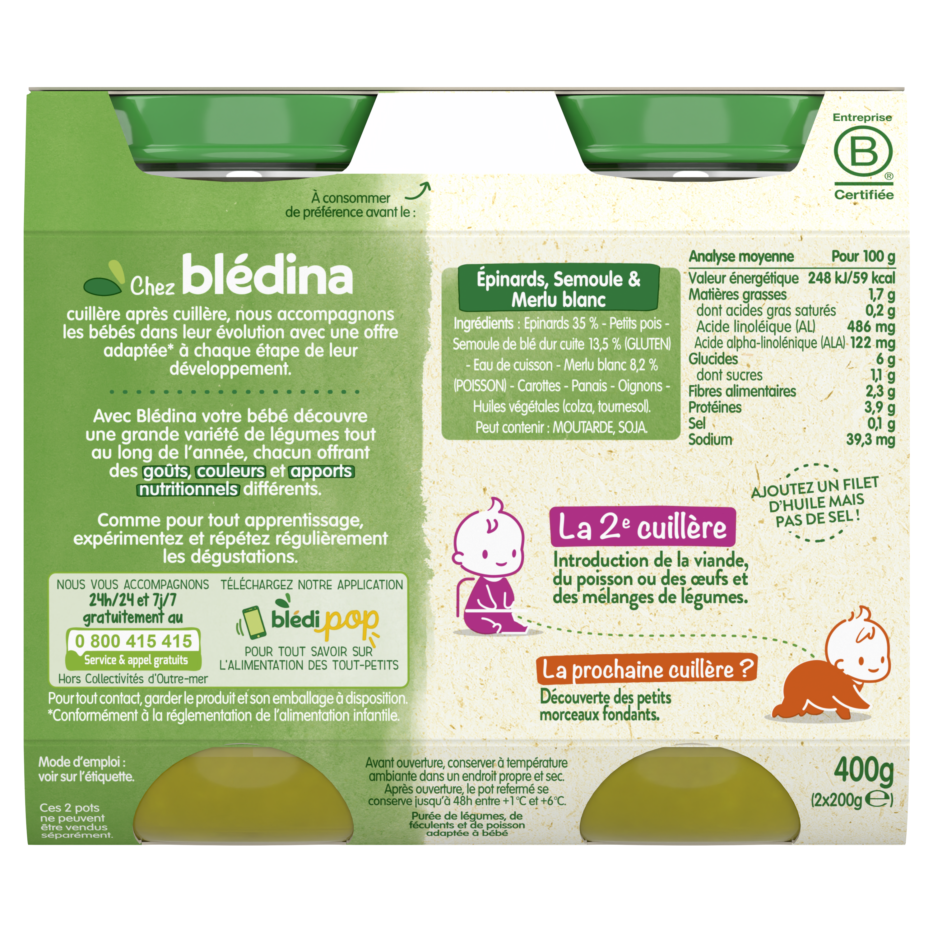 Petits pots Blédina - Epinards Semoule Merlu Blanc - Lot x4