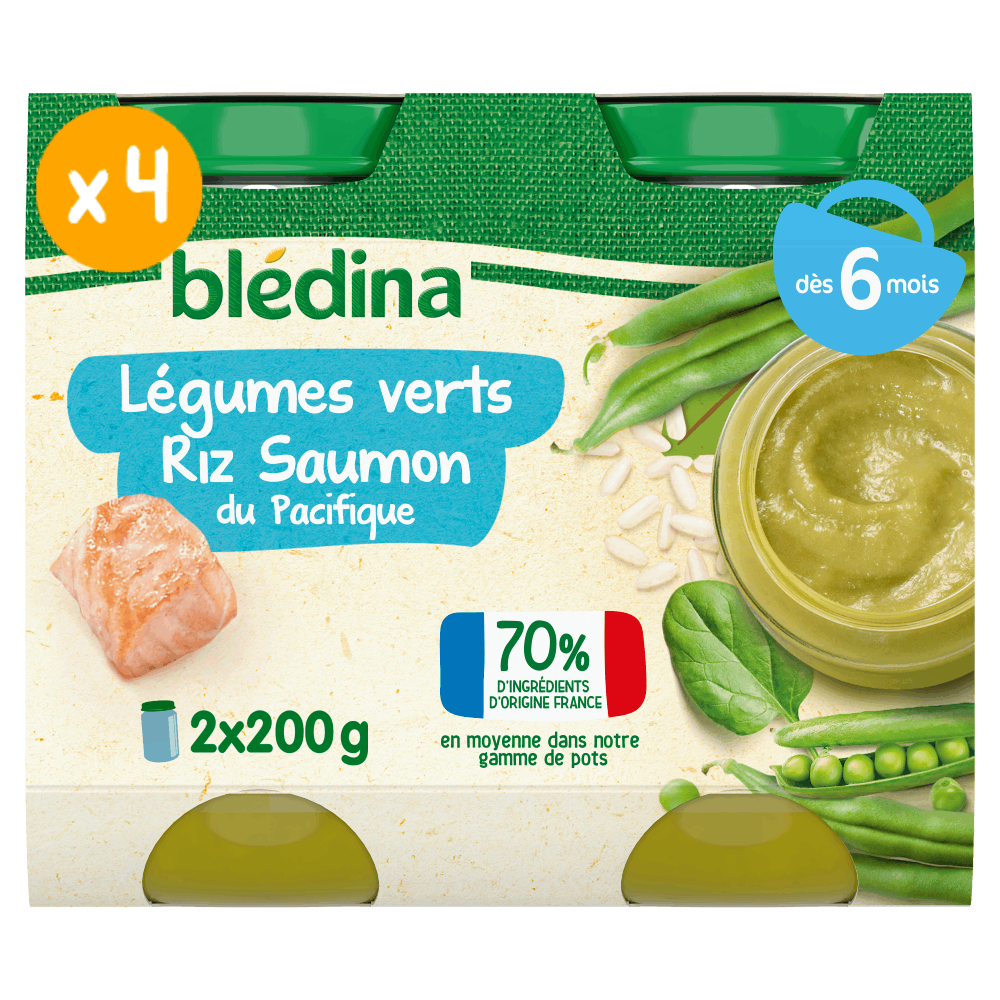 Petits pots Blédina - Légumes verts Riz Saumon du Pacifique - Lot x 4