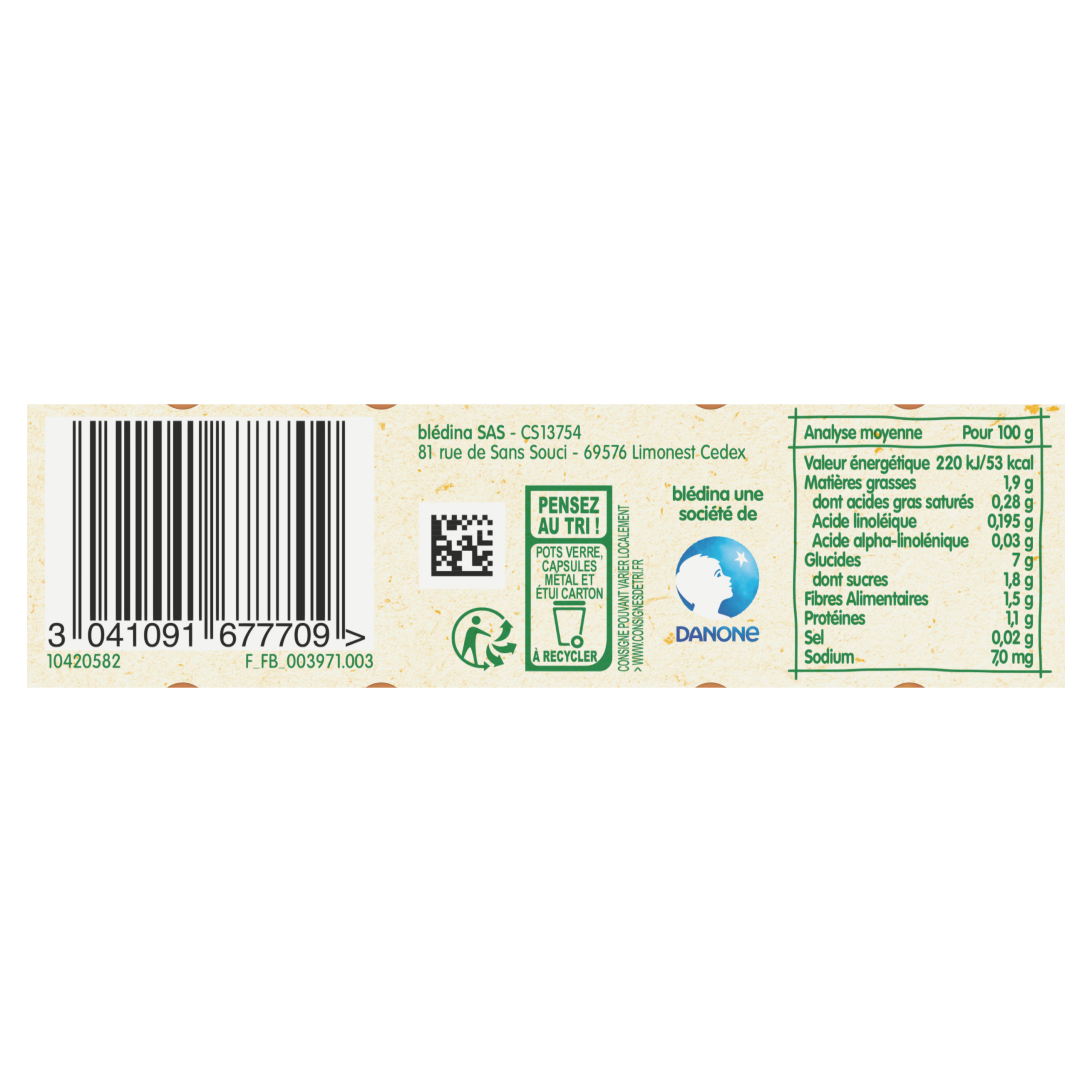 Découvrez les Petits pots Blédina, de délicieuses recettes pour faire découvrir de nouveaux légumes à bébé. Blédina s'engage aussi pour l'avenir de l'agriculture française : 70% de nos ingrédients sont d'origine France**. Lot de 4 pack contenant chacun 2x200g de purée. **En moyenne dans notre gamme de pots