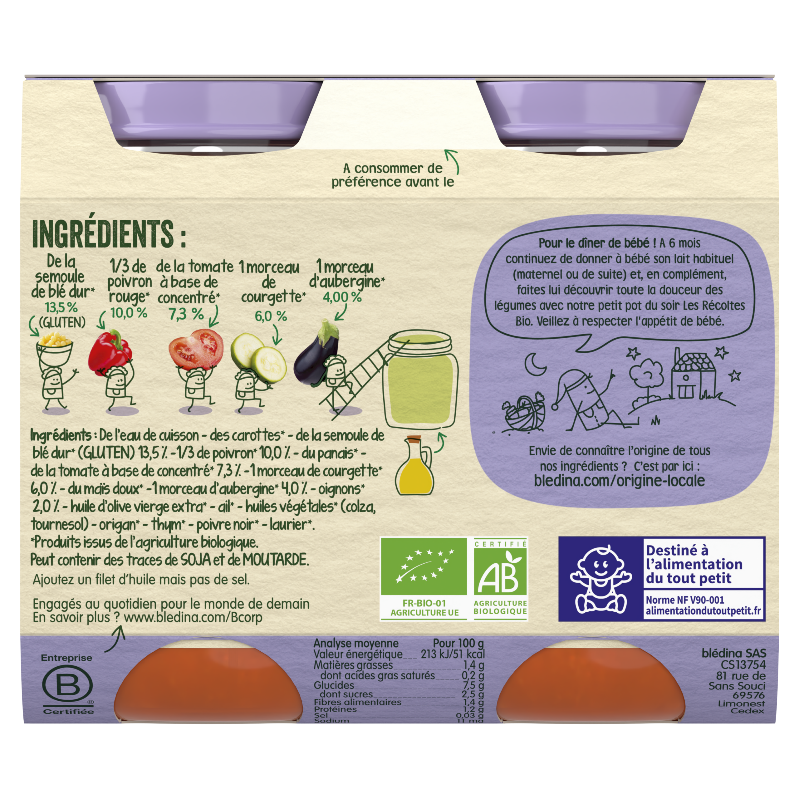 Petits pots Les Récoltes Bio - Petite Ratatouille Semoule - Lot x 4