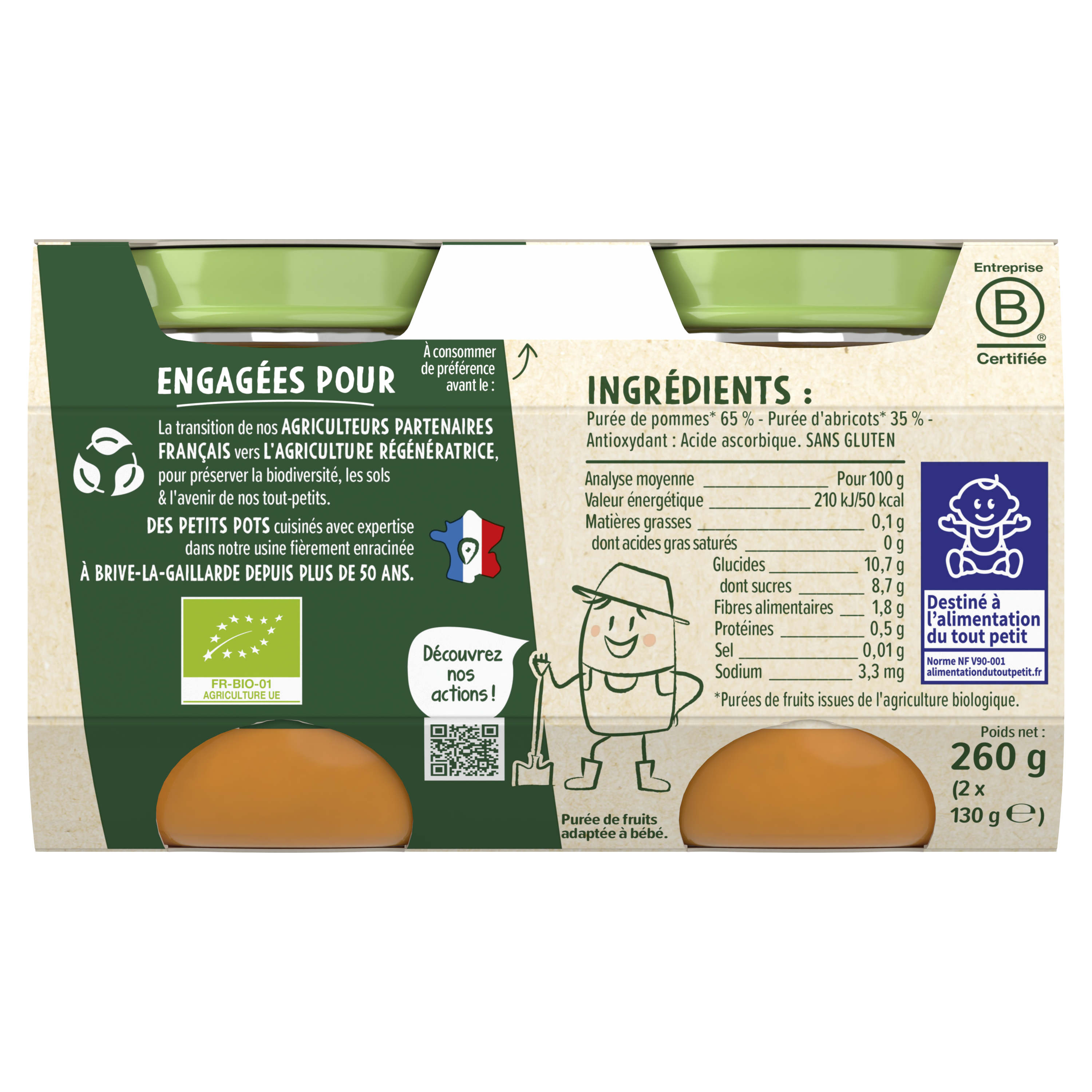 Découvrez les délicieux Petits Pots Les Récoltes Bio, pour faire découvrir à bébé ses premiers fruits tout en douceur, avec une texture lisse et dans un format adapté aux premières cuillères.  ⠀⠀⠀⠀⠀⠀⠀⠀⠀ Lot de 4 packs contenant chacun 2x100g de purée de fruits.