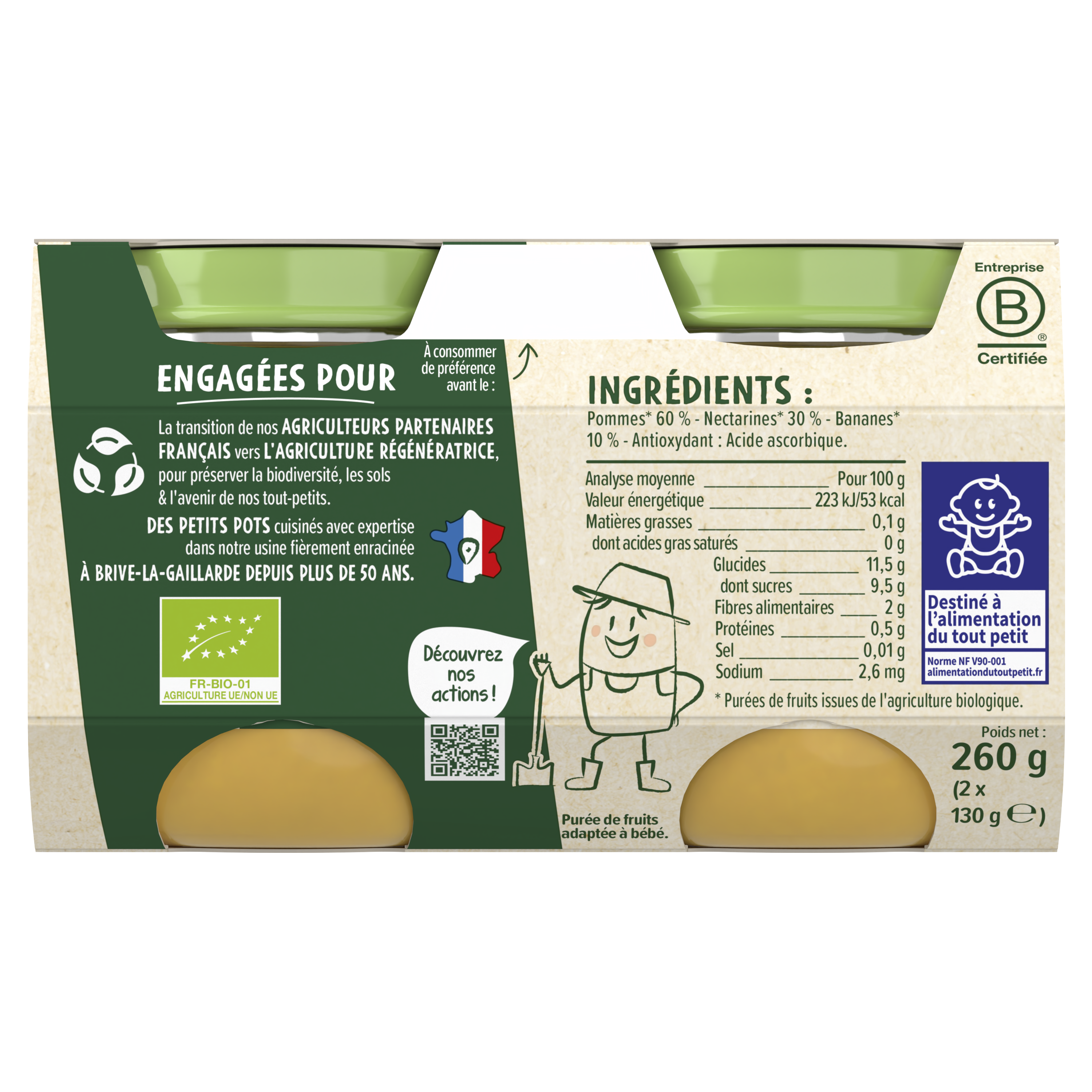 Découvrez les petits pots Les Récoltes Bio pour faire découvrir nouvelles saveurs à bébé. Lot de 4 packs contenant chacun 2x130g de purée de fruits.