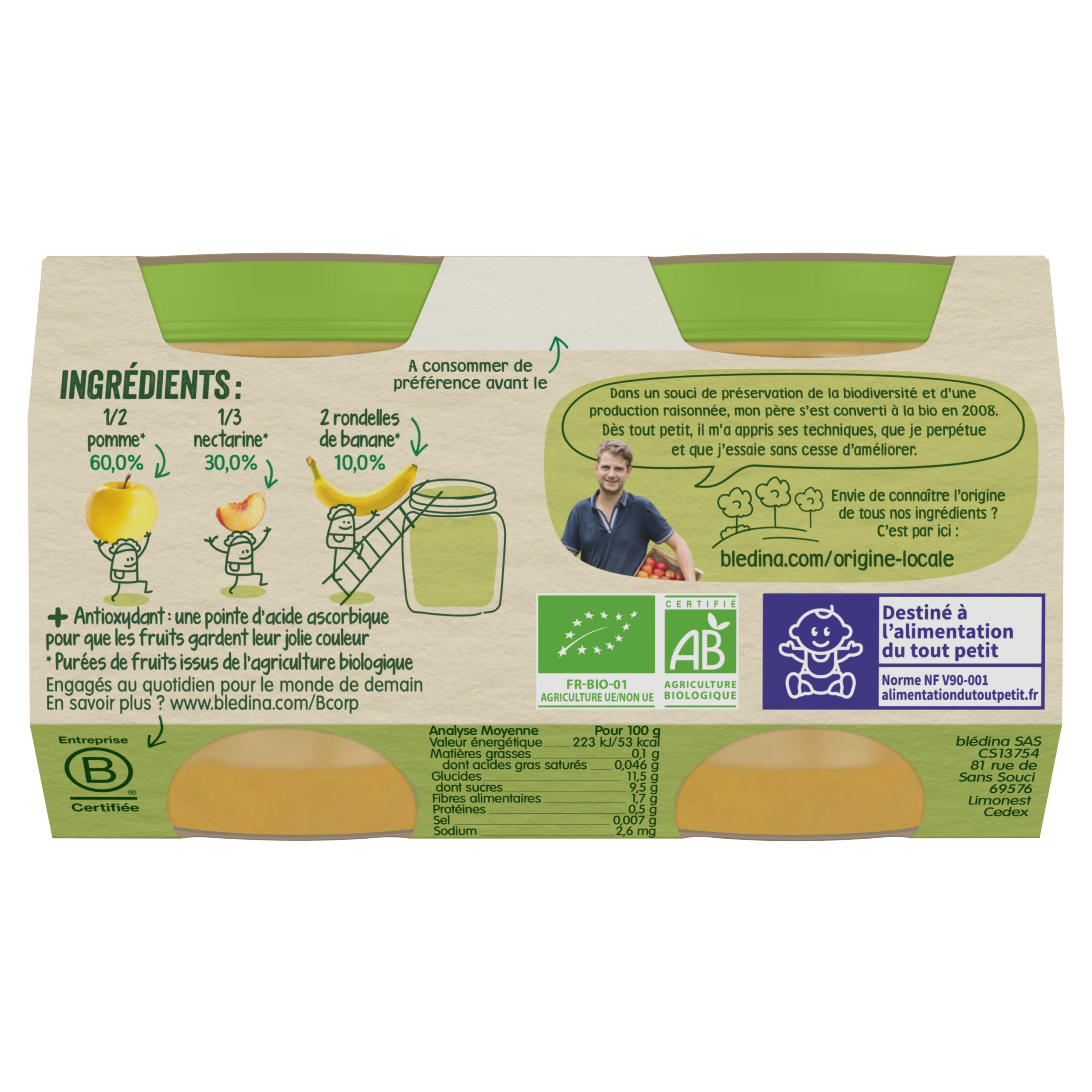 Petits pots Les Récoltes Bio - Pommes Nectarines Bananes - Lot x 4