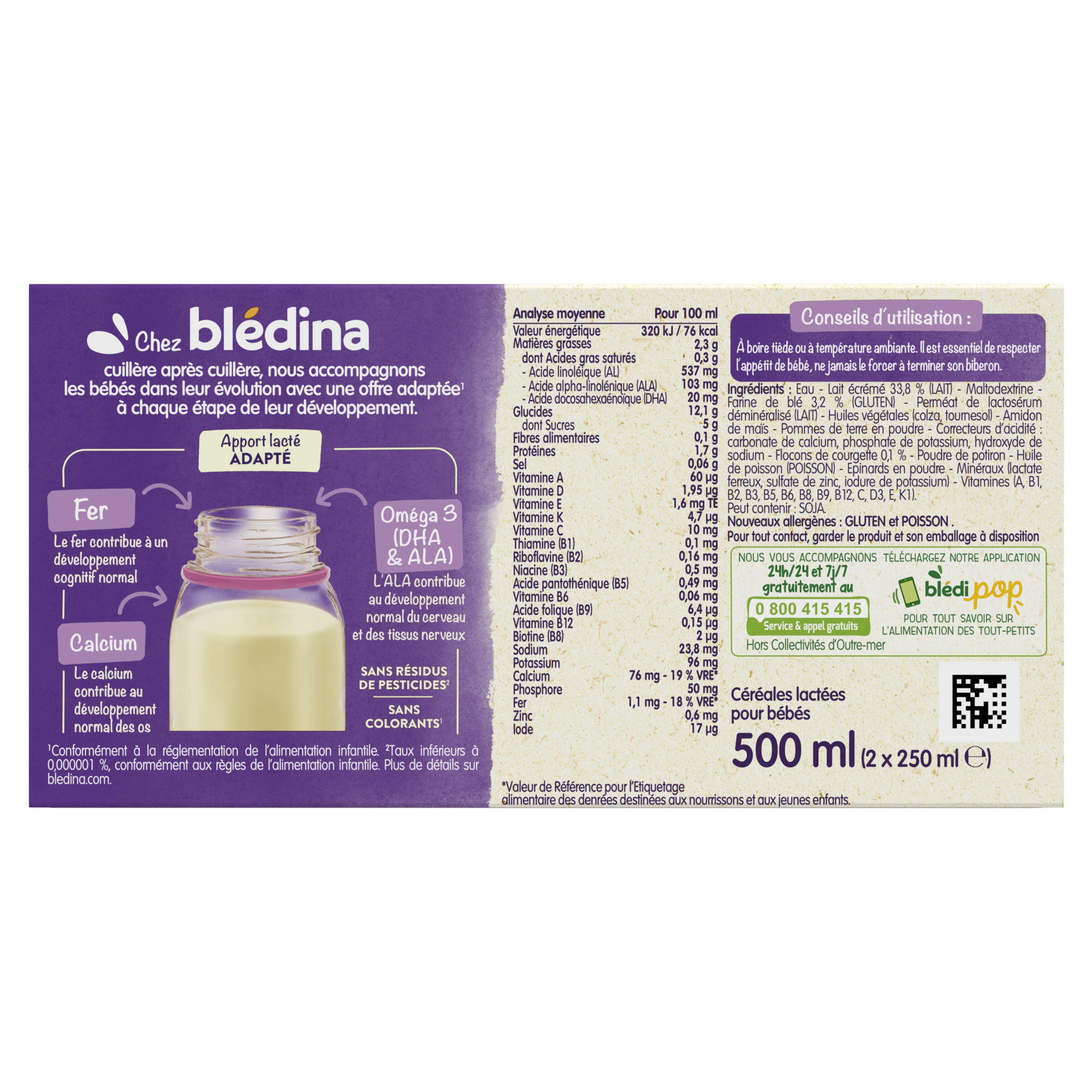 Blédîner Courgettes, c’est un savoureux dîner complet pour bébé avec un apport lacté adapté, des céréales et des légumes au goût tout doux ! Et le tout dans un format pratique & prêt à l’usage ! Pour faire de chaque soir une belle histoire, initiez bébé aux notes douces des légumes en lui proposant des céréales lactées aux légumes Blédiner.