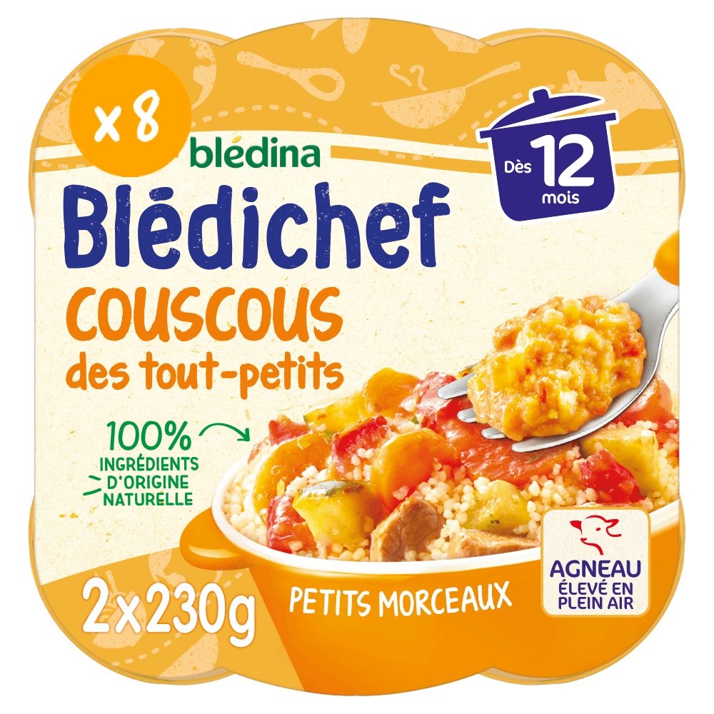 Découvrez les petits plats Blédichef® de Blédina : une large gamme de plats savoureux pour le déjeuner et le dîner, spécialement élaborés pour régaler votre bébé en toute sérénité et lui faire découvrir chaque jour de nouvelles saveurs ! Ce petit plat Blédichef®, avec des petits morceaux, est adapté à bébé à partir de 12 mois. Des ingrédients d’origine naturelle Agneau élevé en plein air Des textures adaptées à l’âge de bébé Un format toujours aussi pratique ⠀⠀⠀⠀⠀⠀⠀⠀⠀ Découvrez nos Blédichef x2 –40% de plastique*. Sans couvercle mais pas sans raison *par rapport à nos anciens plats ⠀⠀⠀⠀⠀⠀⠀⠀⠀ Lot de 8 plats de 230g.