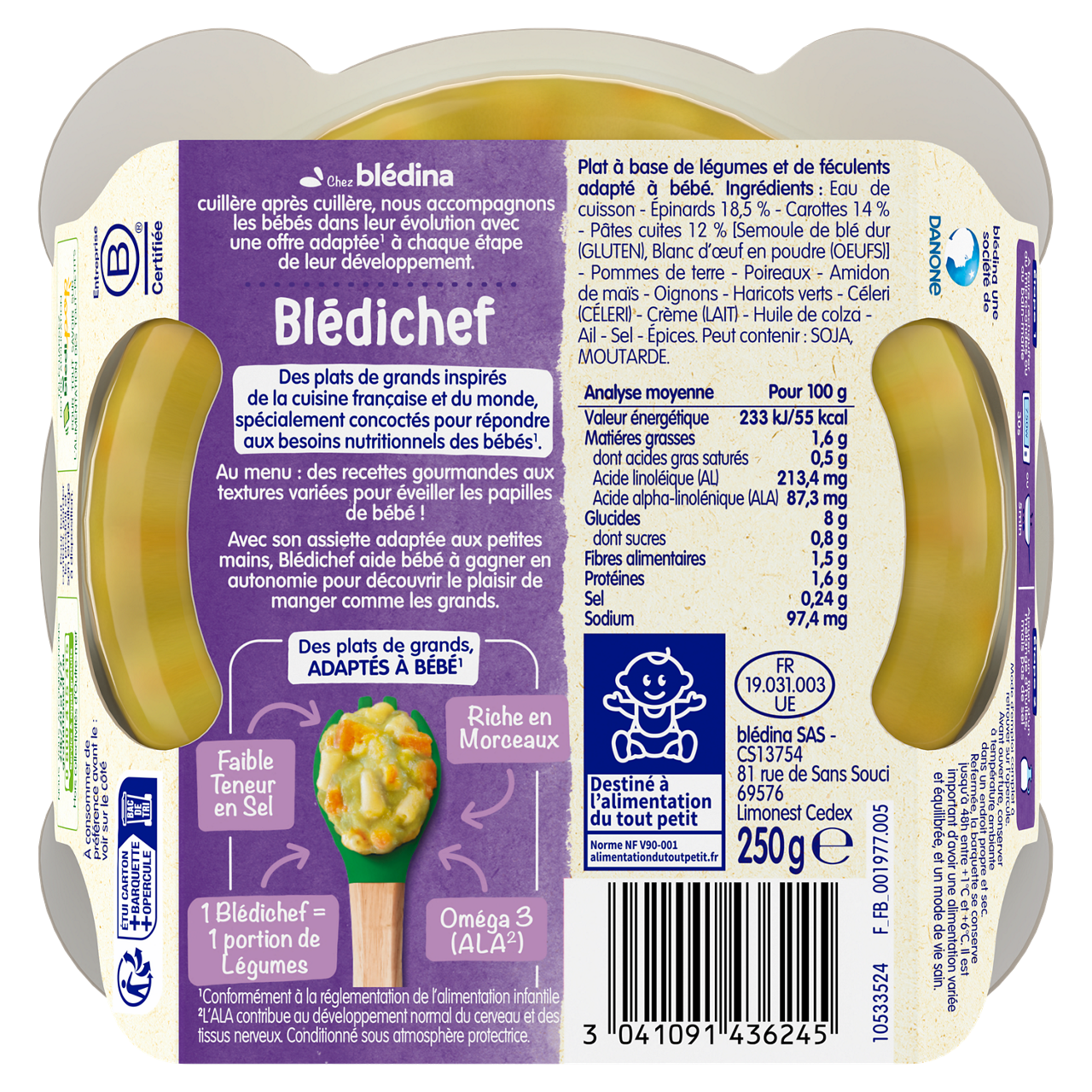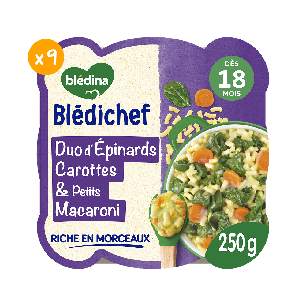 Blédichef - Duo d'épinards carottes et petits macaroni - Lot x9