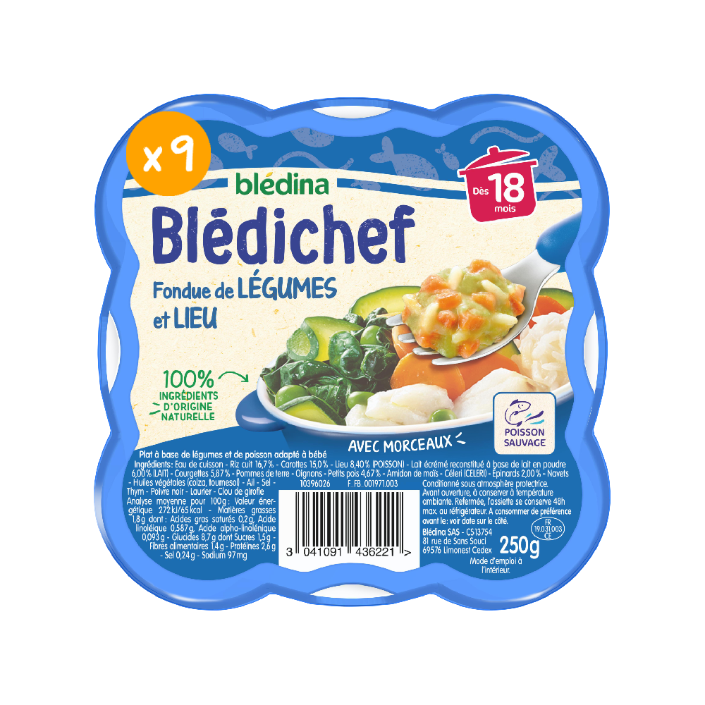 Blédichef - Fondue de légumes et lieu - Lot x9