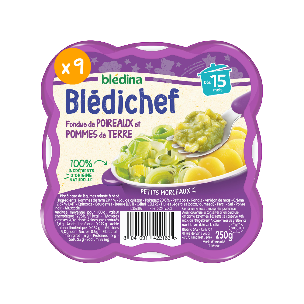 Blédichef - Fondue de poireaux et pommes de terre - Lot x9
