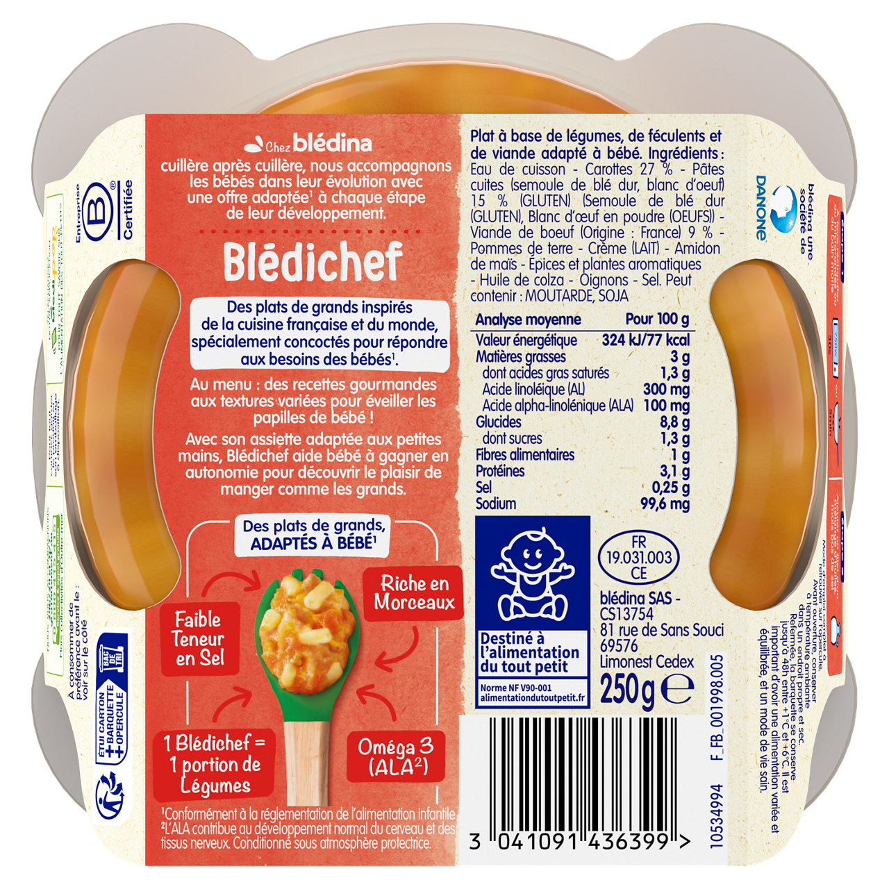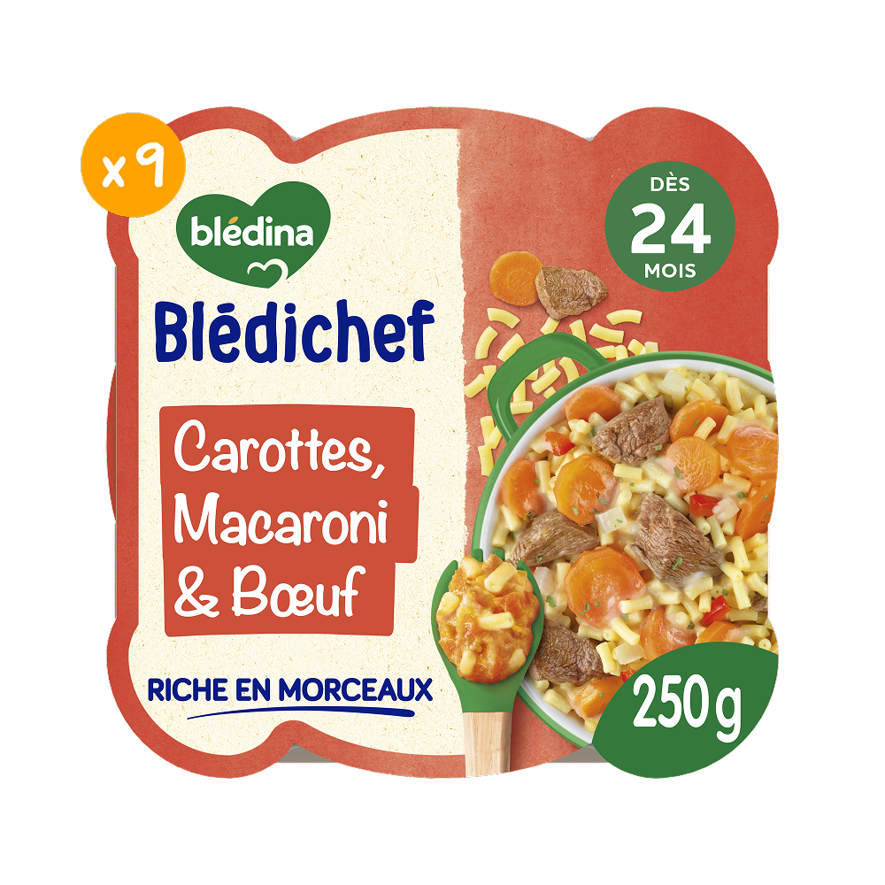Blédichef - Mitonné de carottes, petits macaroni et bœuf - Lot x9
