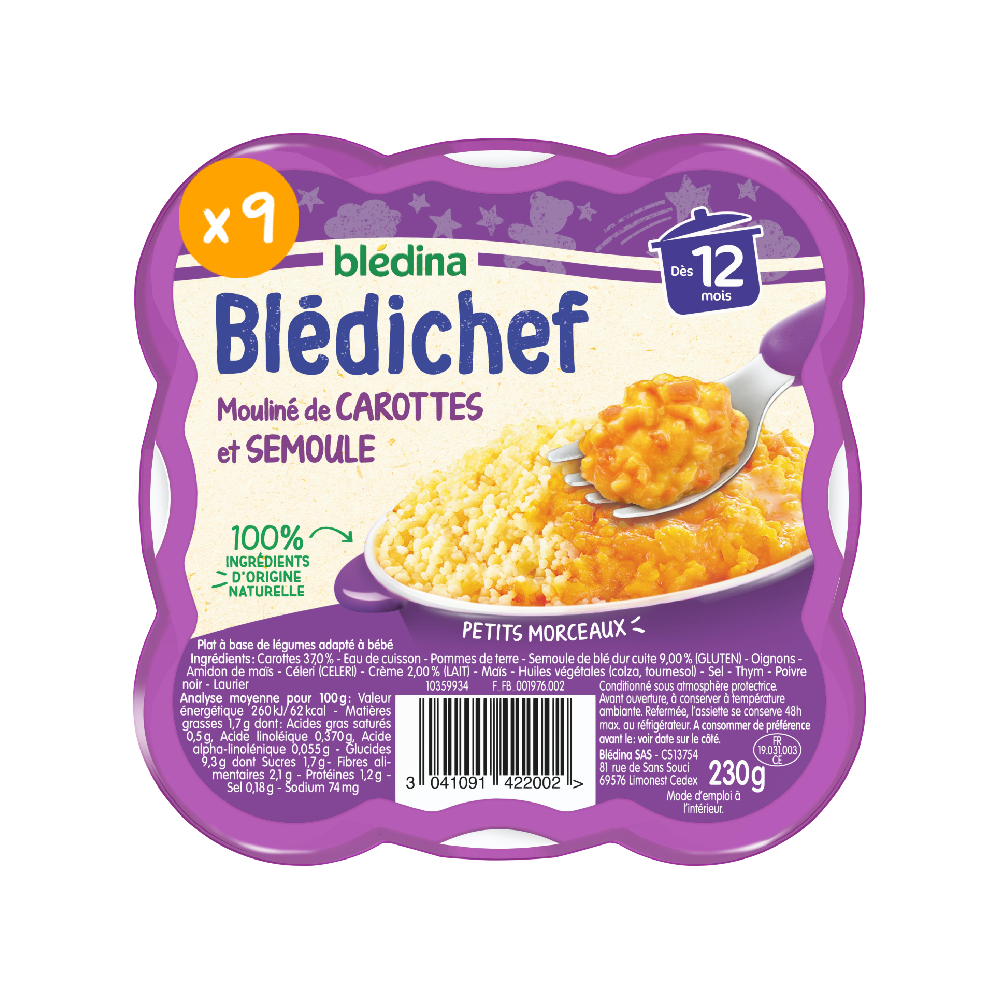 Blédichef - Mouliné de carottes et semoule - Lot x9