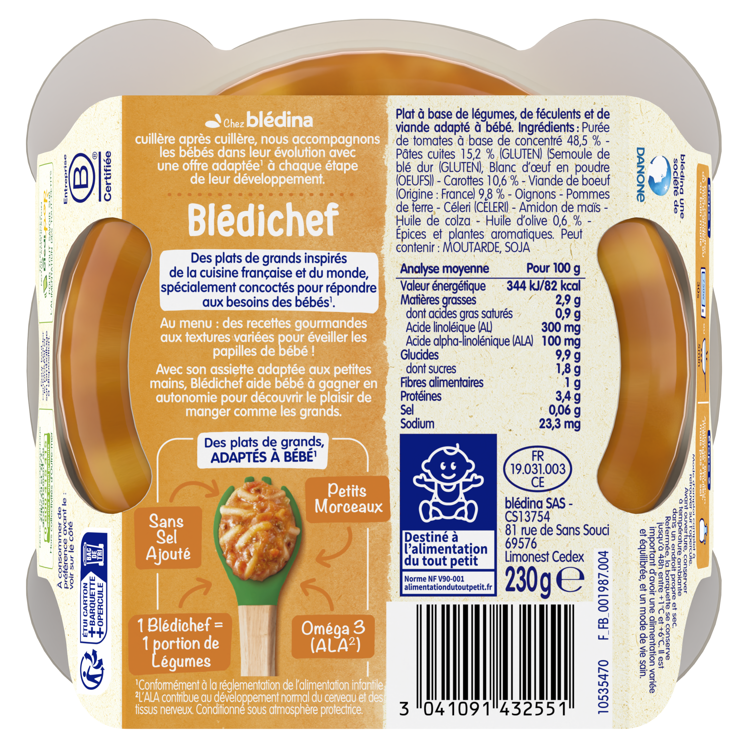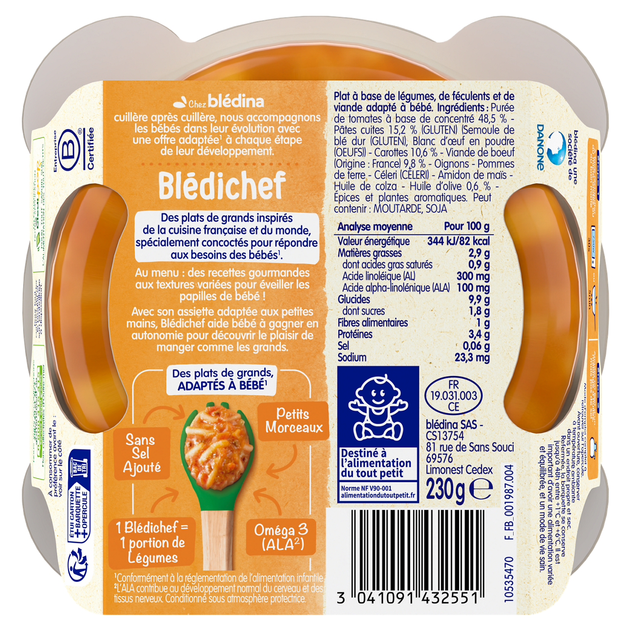 Blédichef - Petits spaghetti à la bolognaise - Lot x9