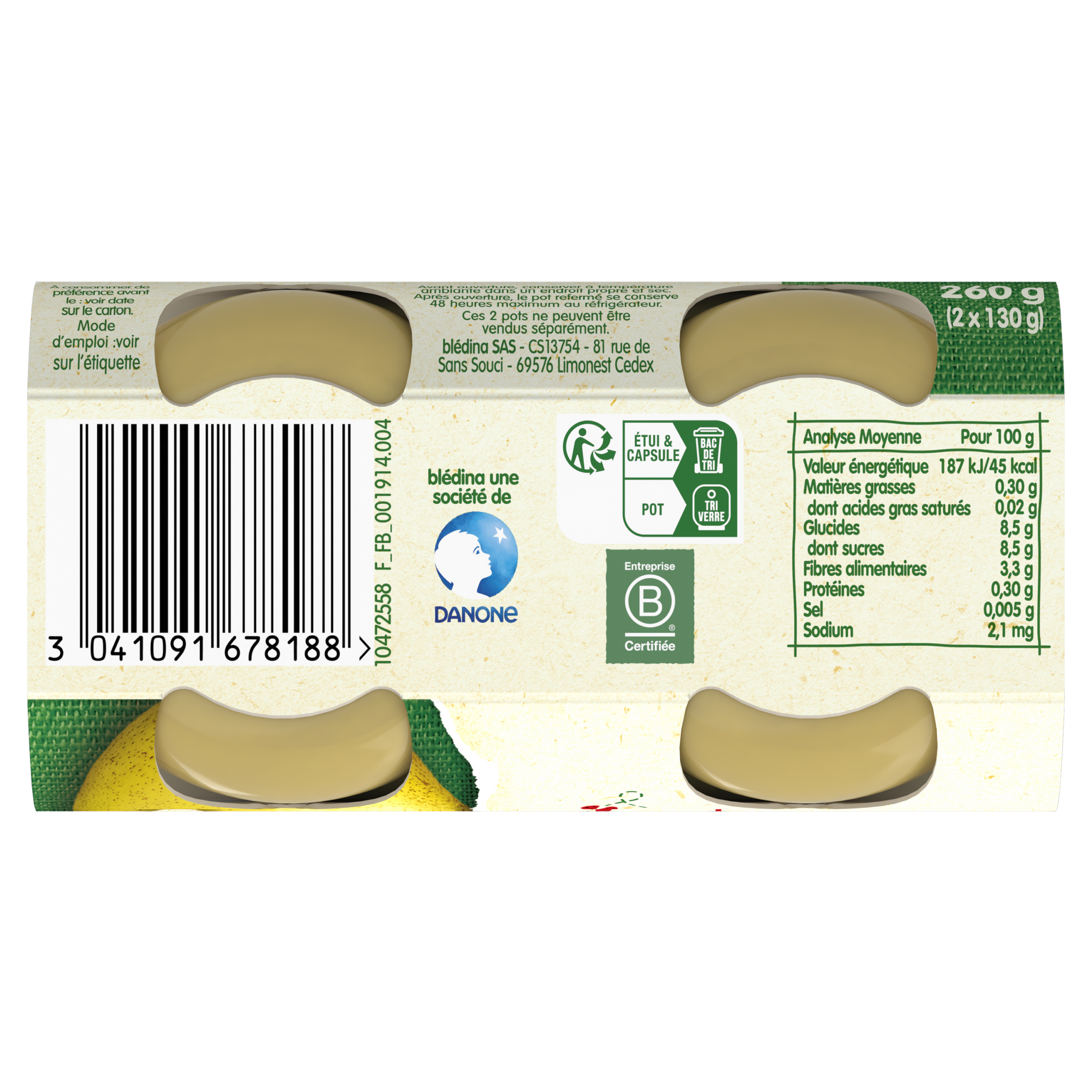 • 16 1er petits pots pour 8 mono-saveurs (Carottes, Petits Pois, Artichauts, Epinards, Haricots Verts, Pommes, Poires, Bananes)