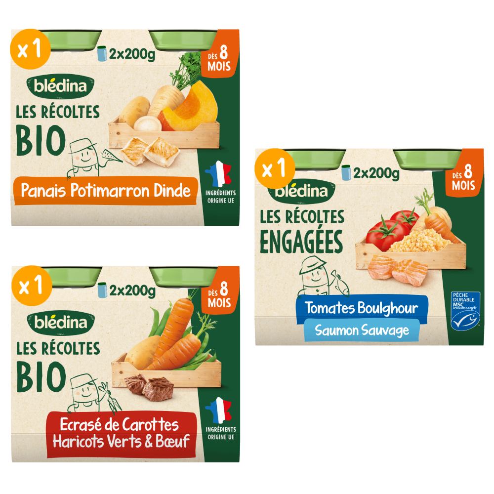 Petits pots - Les récoltes Bio & Engagées - Lot multi-variétés Légumes Viande et Poisson dès 8 mois x 3
