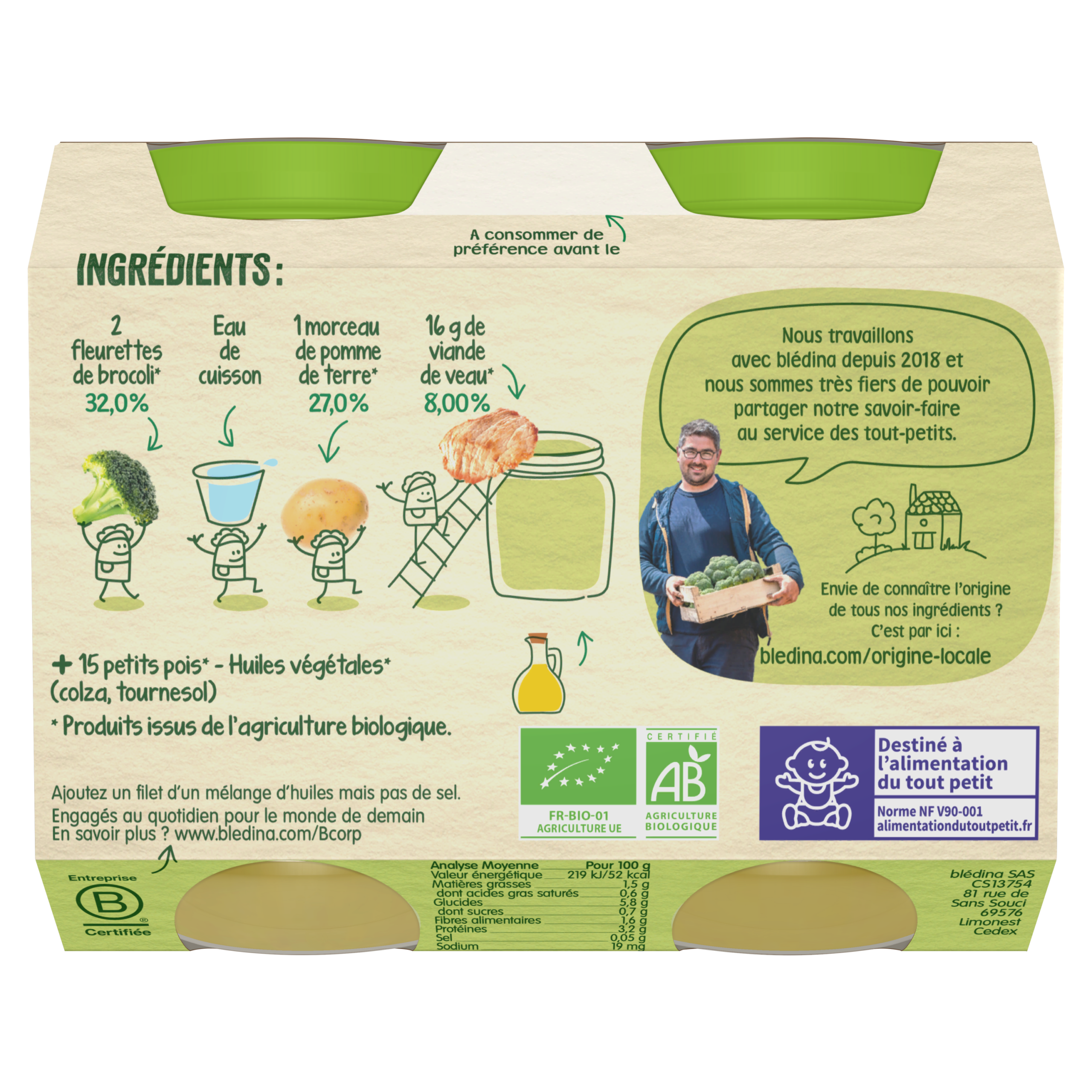 Blédina-Les récoltes bio-Broccoli Potato Veal-2 x 200 g