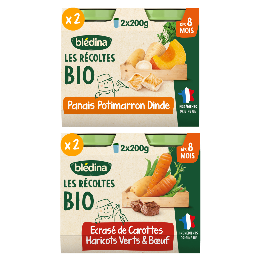 Petits pots - Les récoltes Bio - Lot Multi-variétés Légumes Viande dès 8 mois x 4