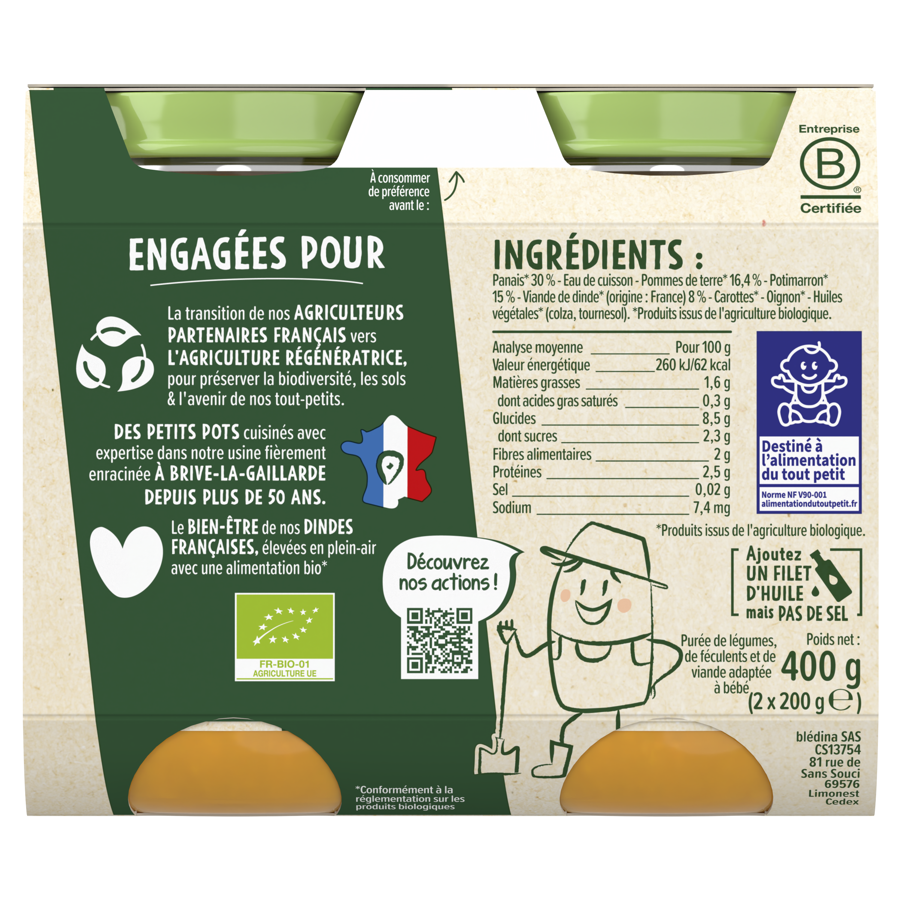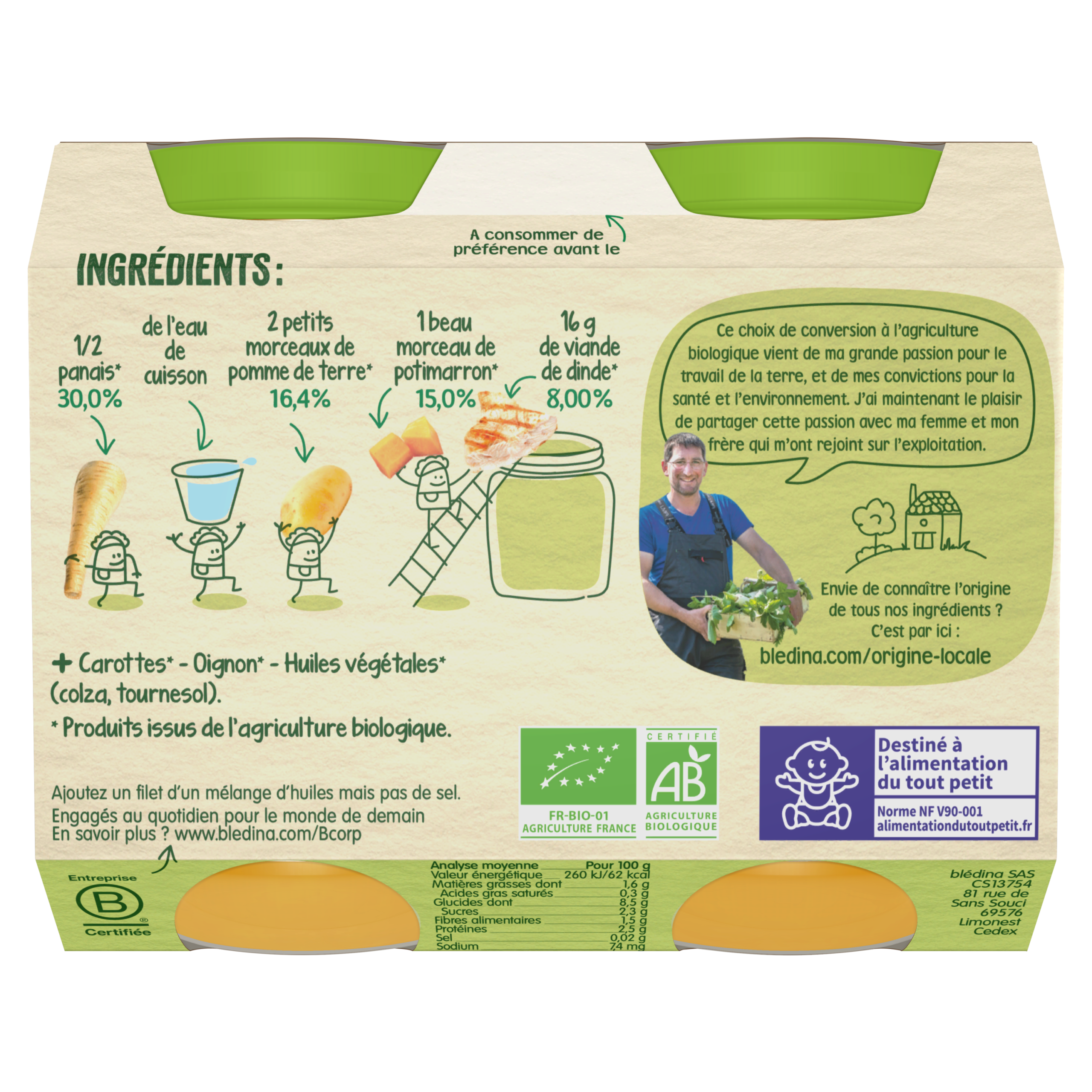 Blédina-Les récoltes bio-Parsnip Pumpkin Turkey-8m+-2 x 200 g