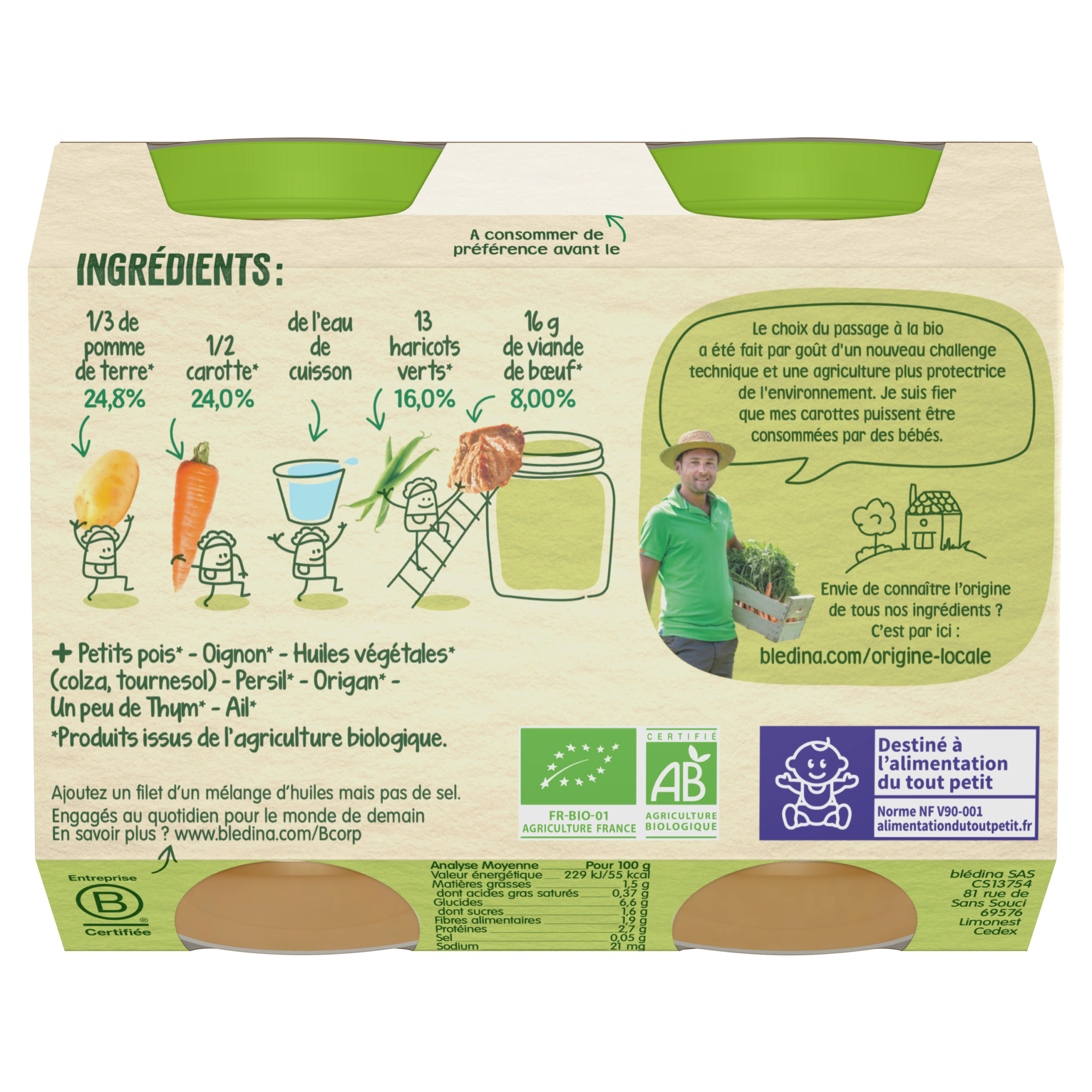 Blédina-Les récoltes bio-Green Bean | Vegetables beef-8m+-200G