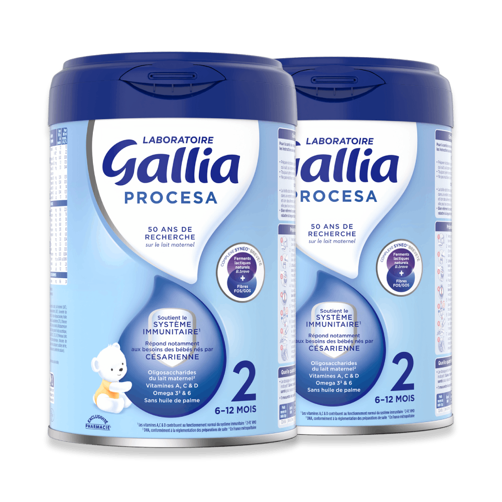C'est en pensant notamment aux bébés nés par césarienne, que le Laboratoire Gallia a conçu Procesa 2, une formule infantile de lait en poudre qui accompagne votre bébé au quotidien de ses 6 mois à ses 1 an.